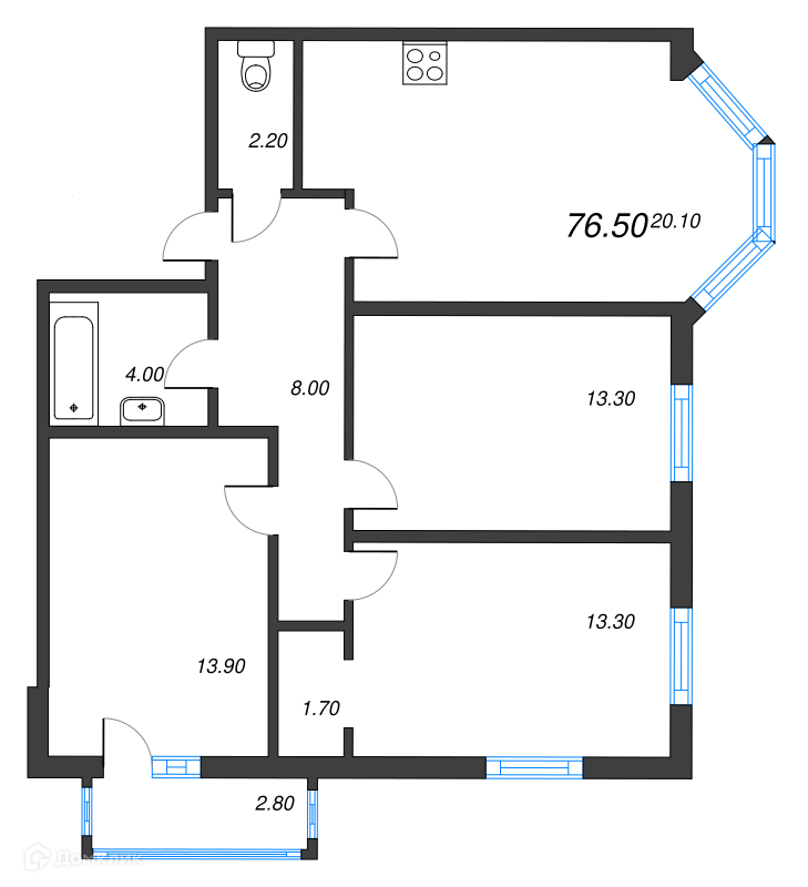 Общая площадь 76.5 м2