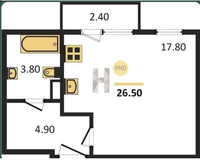 Общая площадь 26.5 м2