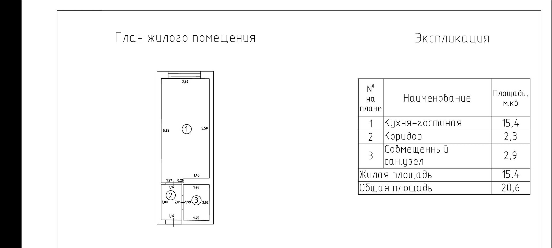 Общая площадь 20.6 м2