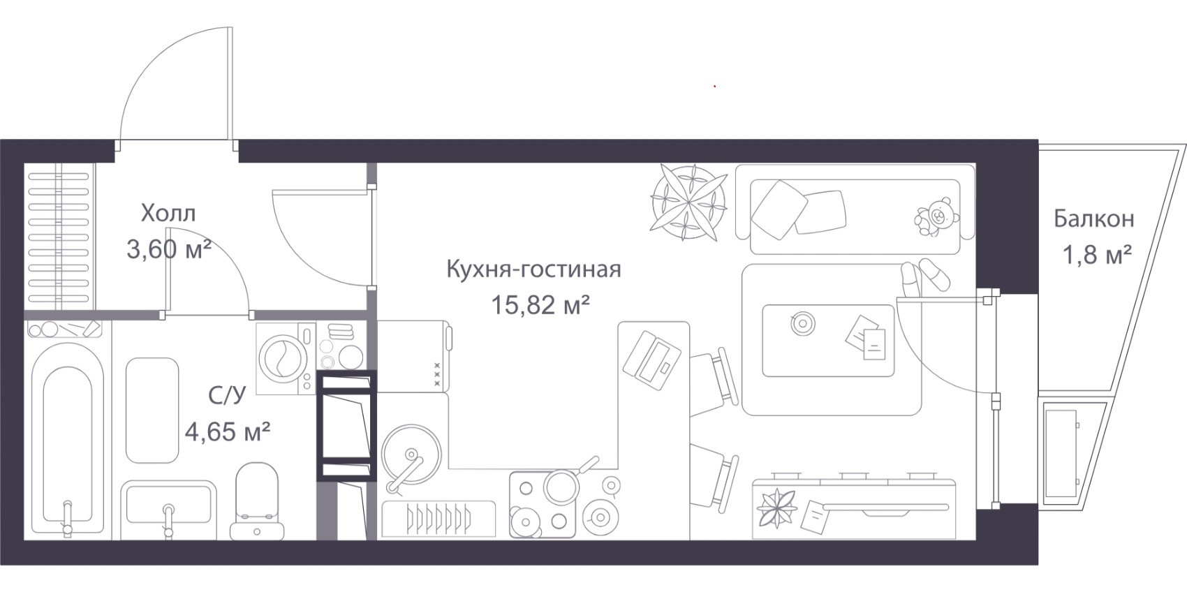 Общая площадь 21.78 м2