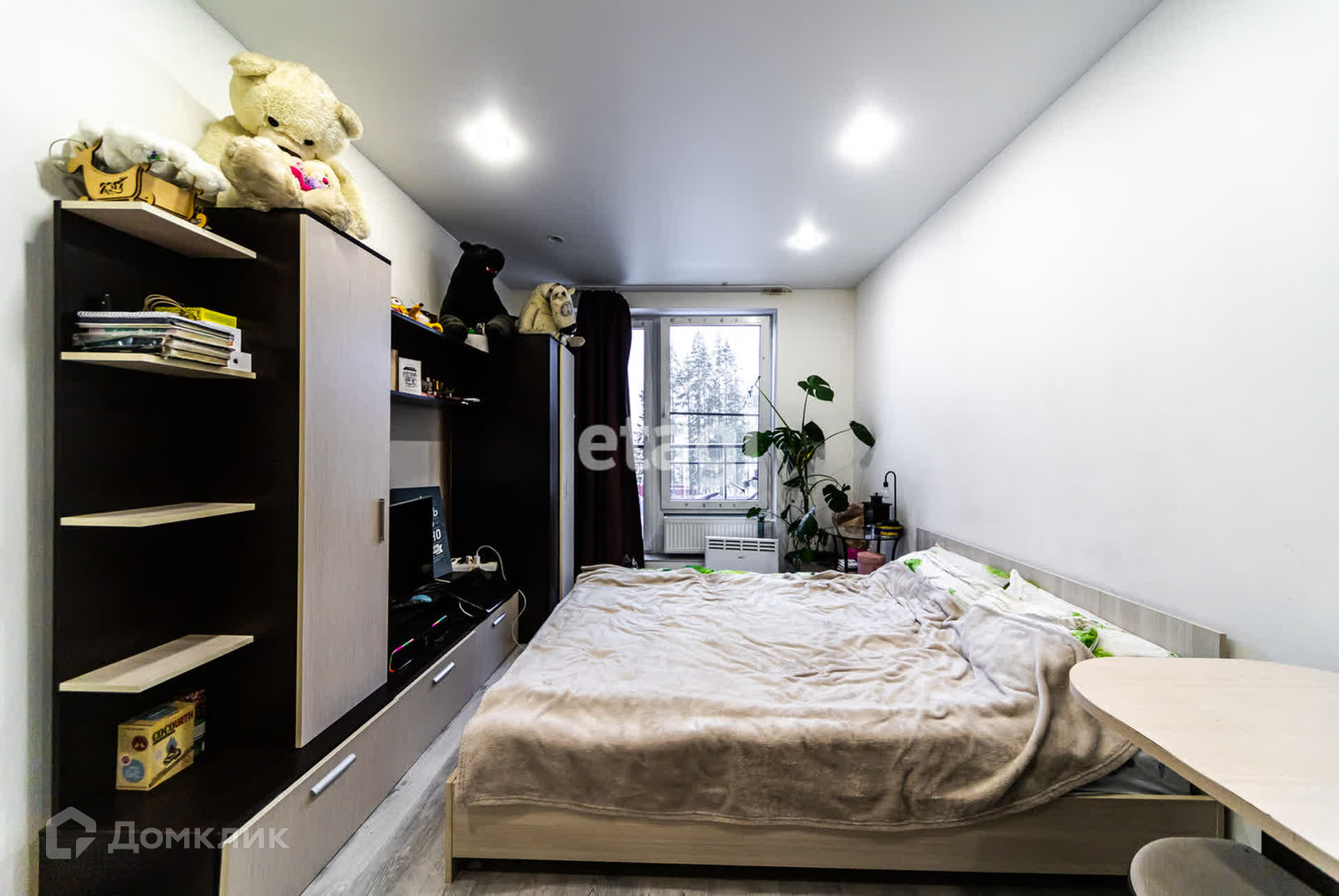 Окна выходят на парковку.