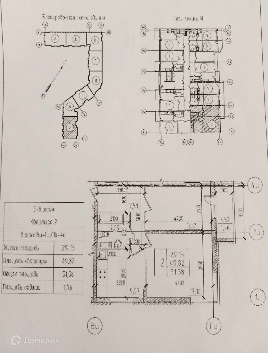 Общая площадь 51.58 м2