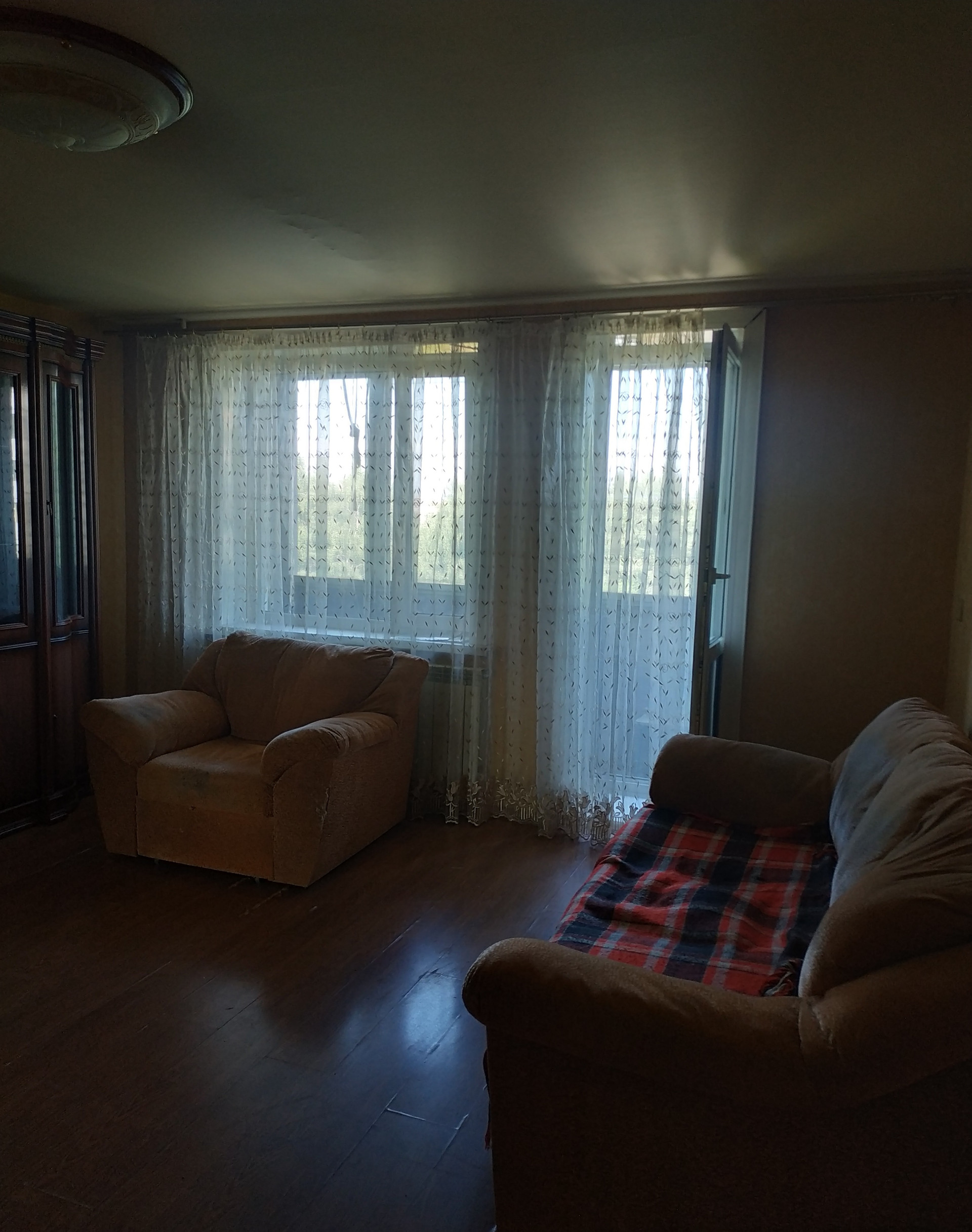 На полу ламинат, лоджий - 2, окна выходят во двор и на улицу.