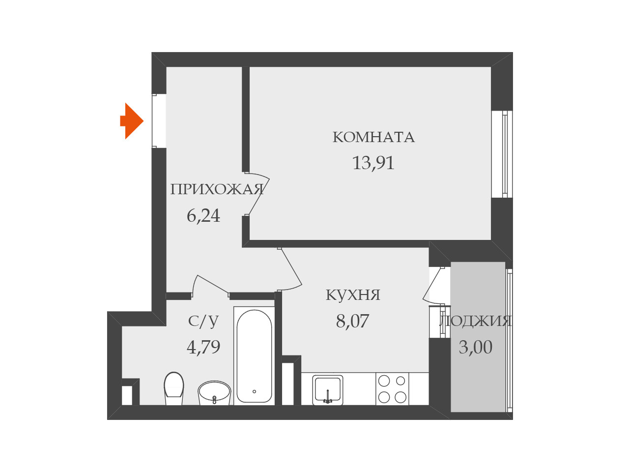 Общая площадь 34 м2