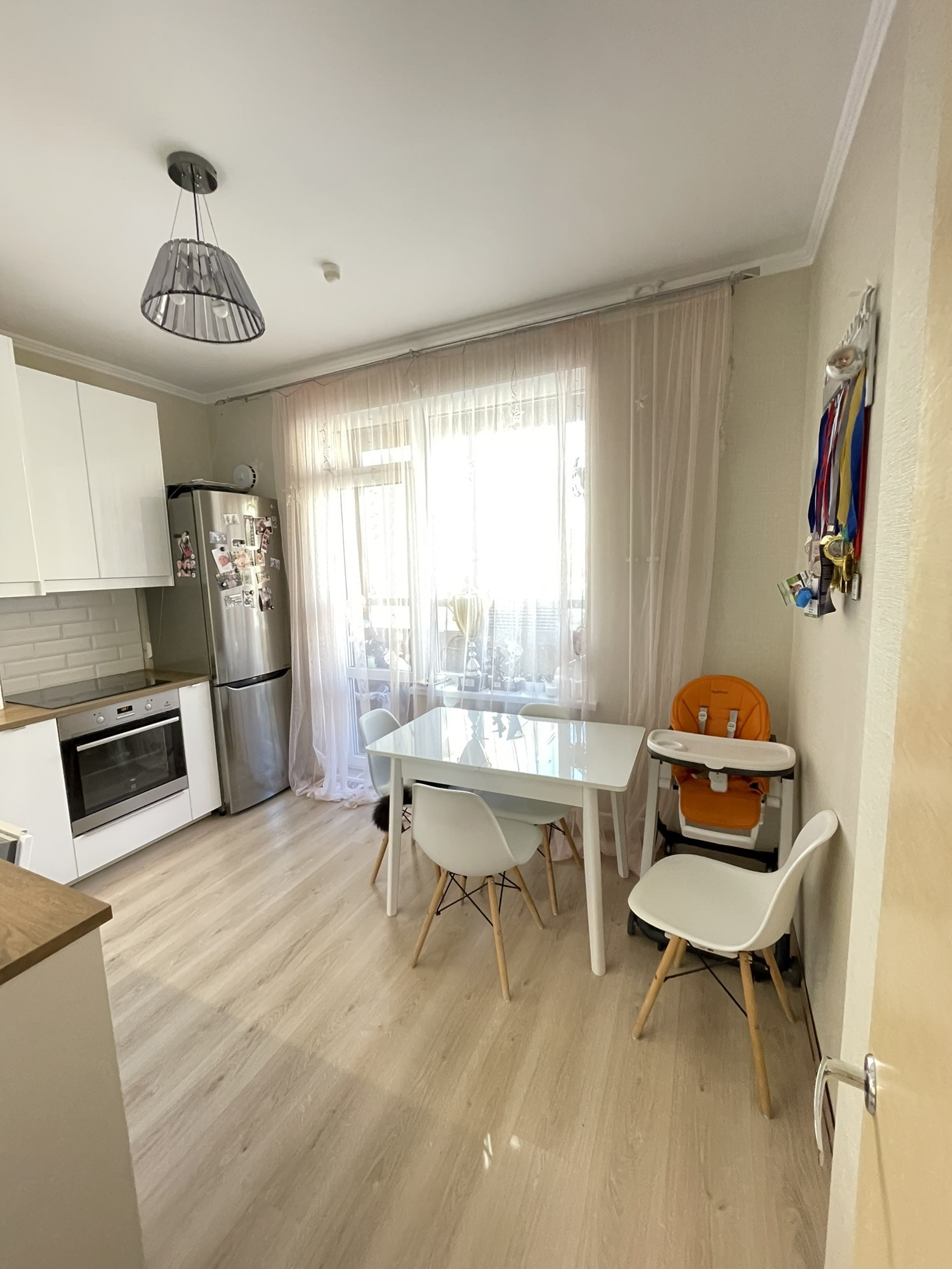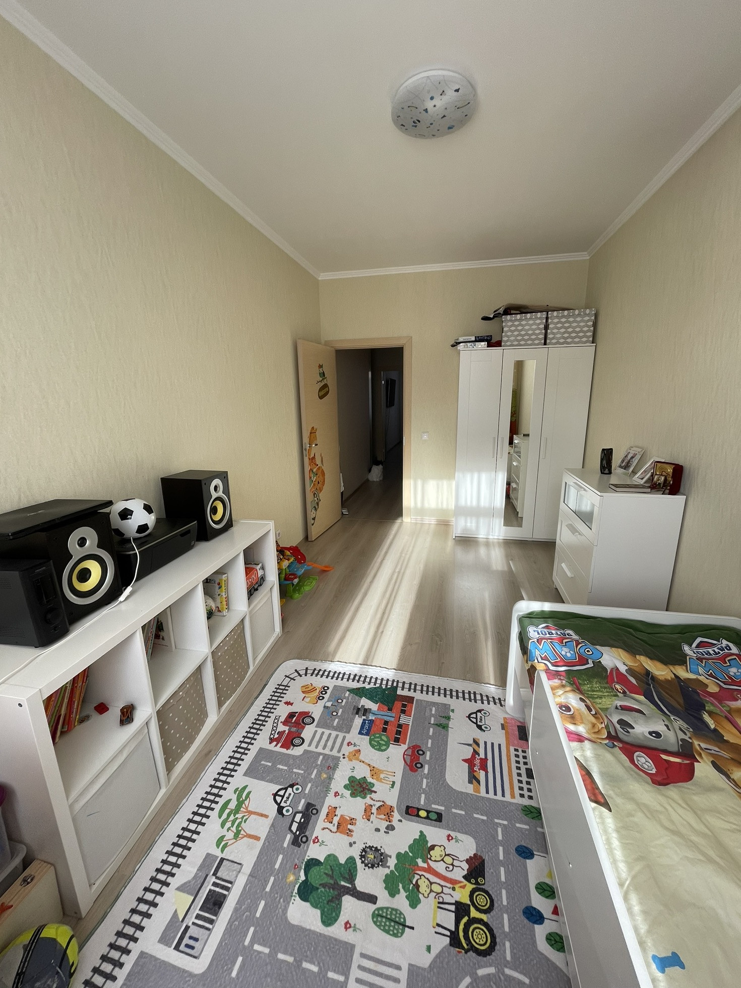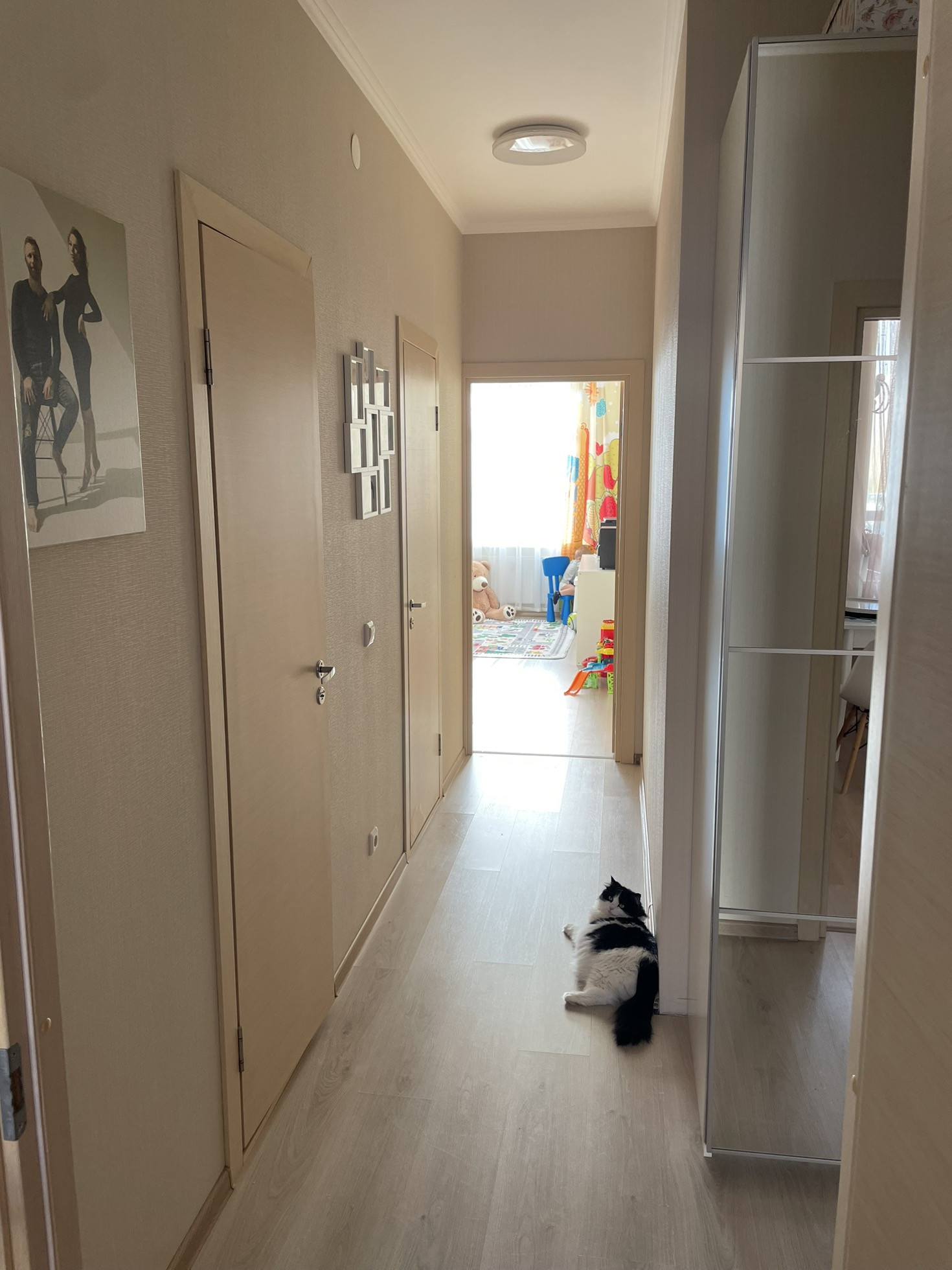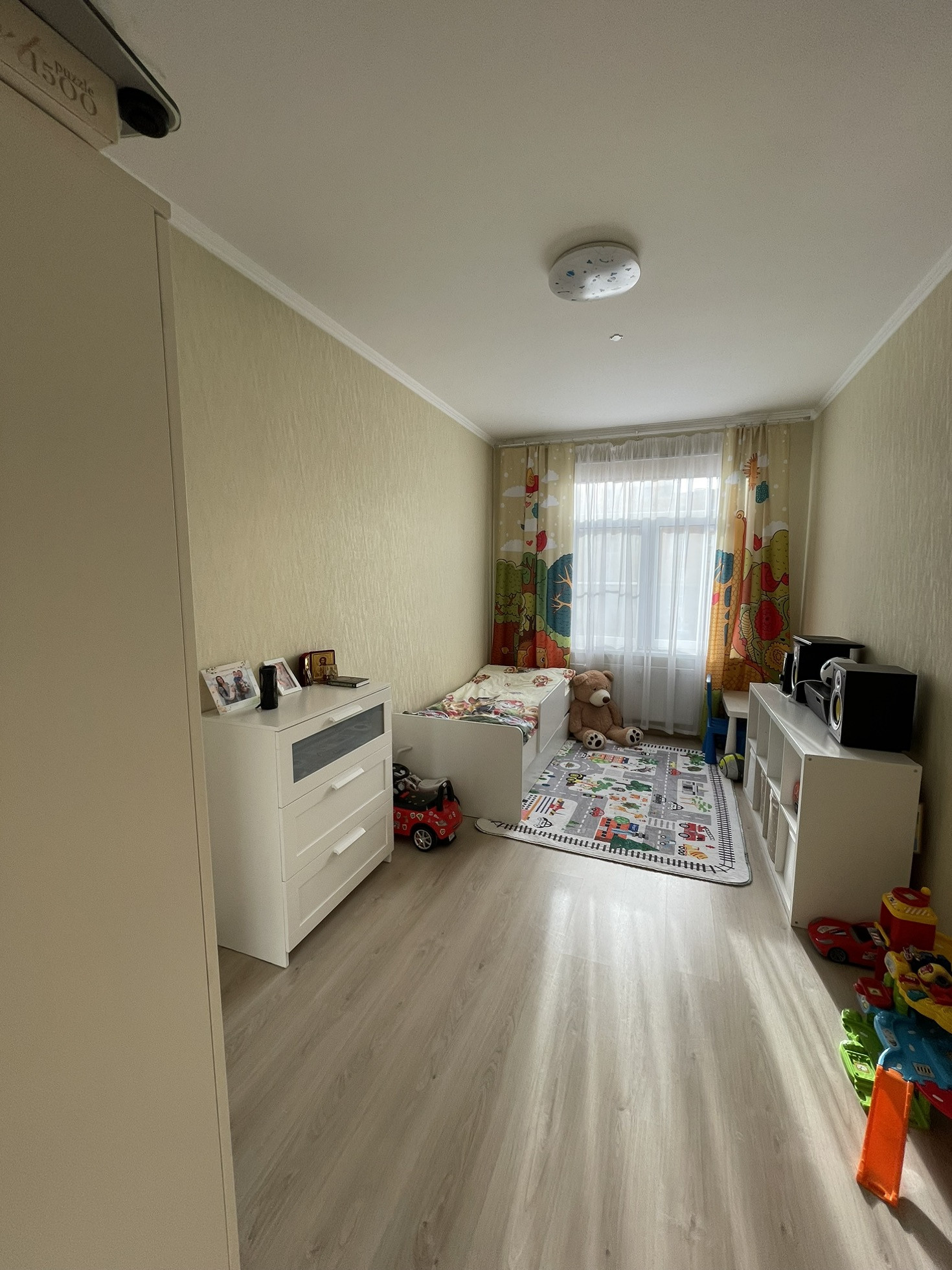 Когда солнечно, то детская залита лучами и там очень приятно и уютно. В квартире летом не жарко, потому что можно делать сквознячок, если открыть окно в детской и взрослой.