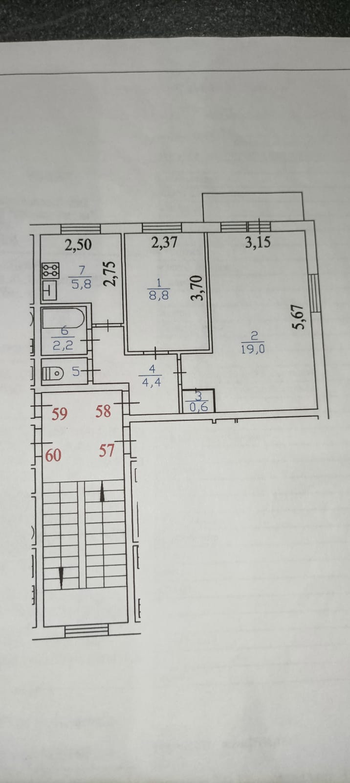 Общая площадь 44 м2