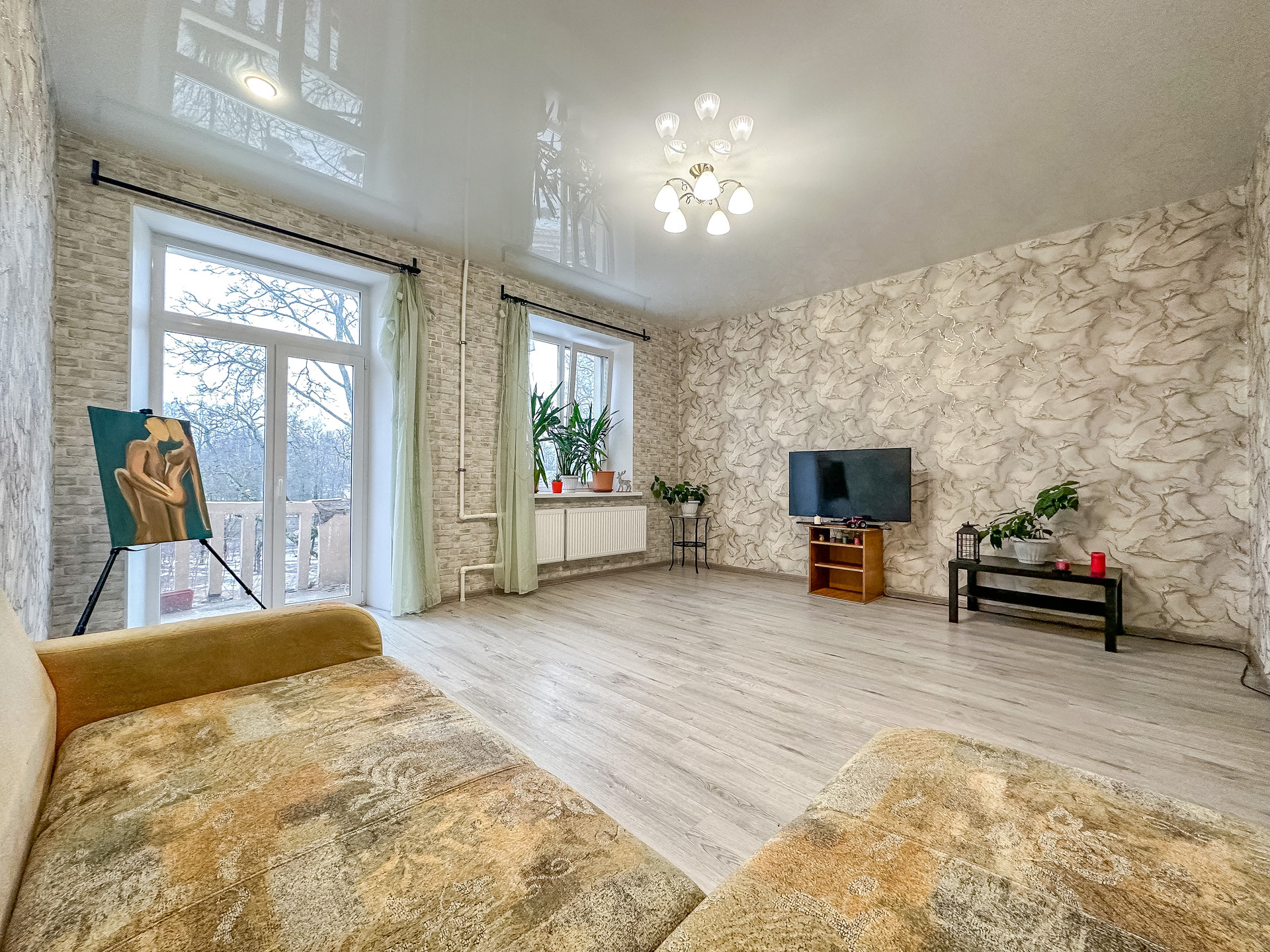 В гостиной комнате был выполнен ремонт: