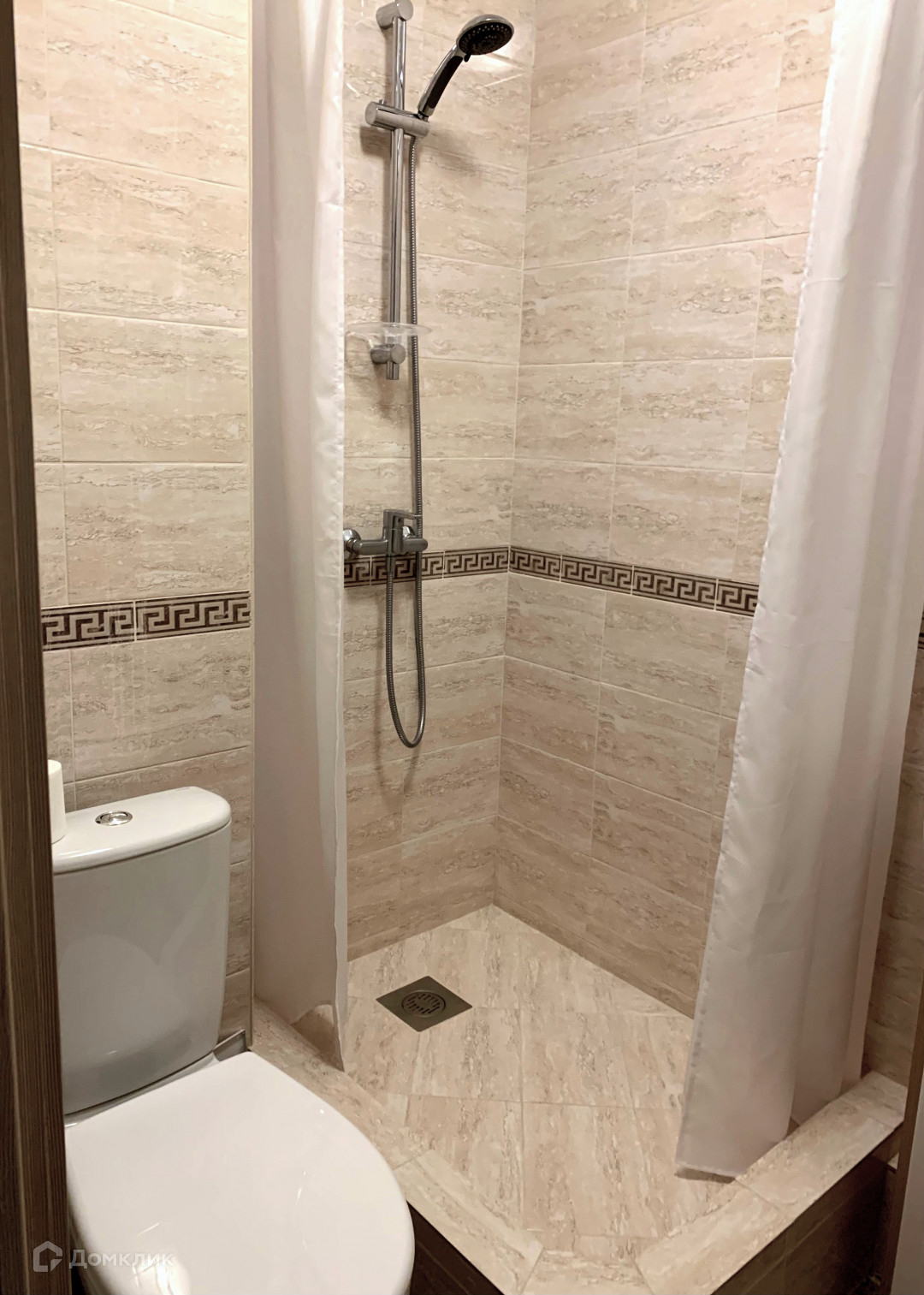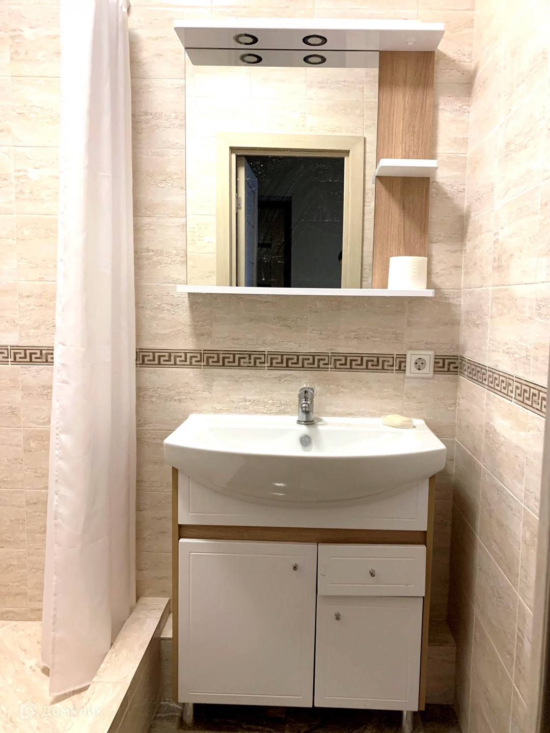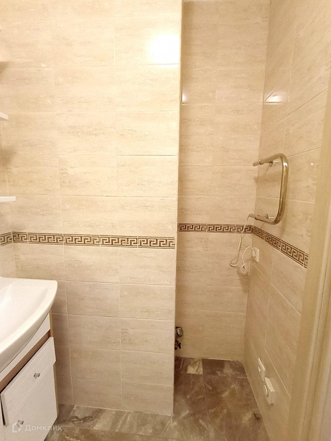 большая ванная комната в  плитке , достаточно просторный коридор