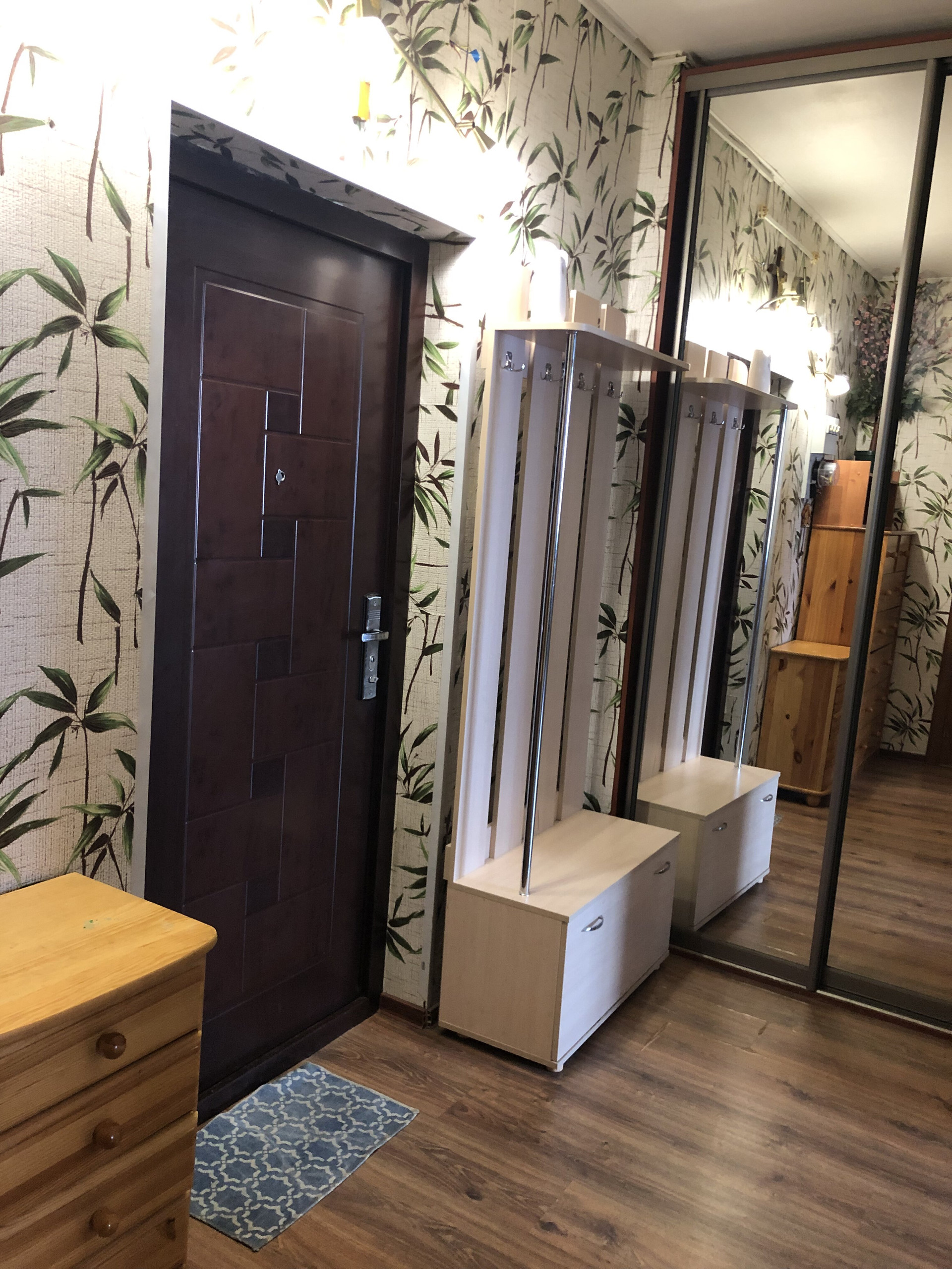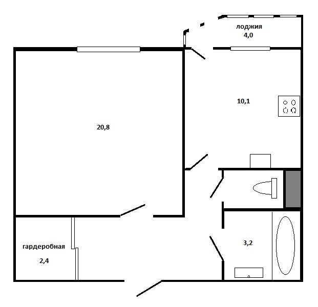 Эргономичная планировка - просторная комната - 20,8 кв.м правильной формы, кухня 10,1 кв. м с застекленной лоджией 4 кв. м на которой можно обустроить уютное место отдыха или хранения, в прихожей зоне находится гардеробная 2,4 кв.м , санузел раздельный, просторная ванная 3,2 кв.м, высота потолков 2,77 м.