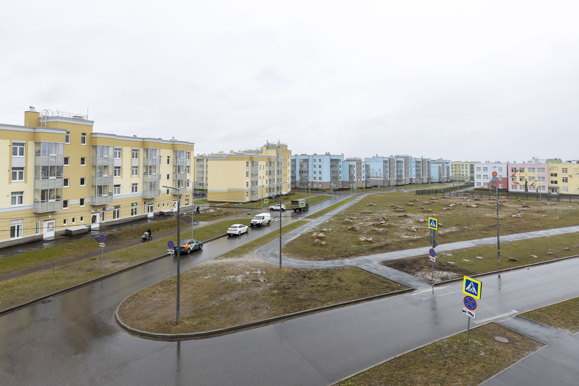 Здесь уже работает большой гипермаркет,  разнообразные магазины, аптека, детский развивающий центр, кафе, создано более 10 детских площадок, уличные тренажеры, футбольное поле. Уже открыт первый детский сад, работает пункт полиции, силами застройщика будут возведены еще один детсад, школа, досуговый и фитнес-центр.