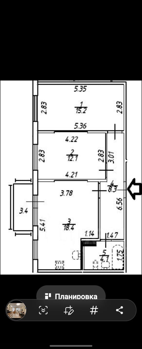Общая площадь 58.1 м2