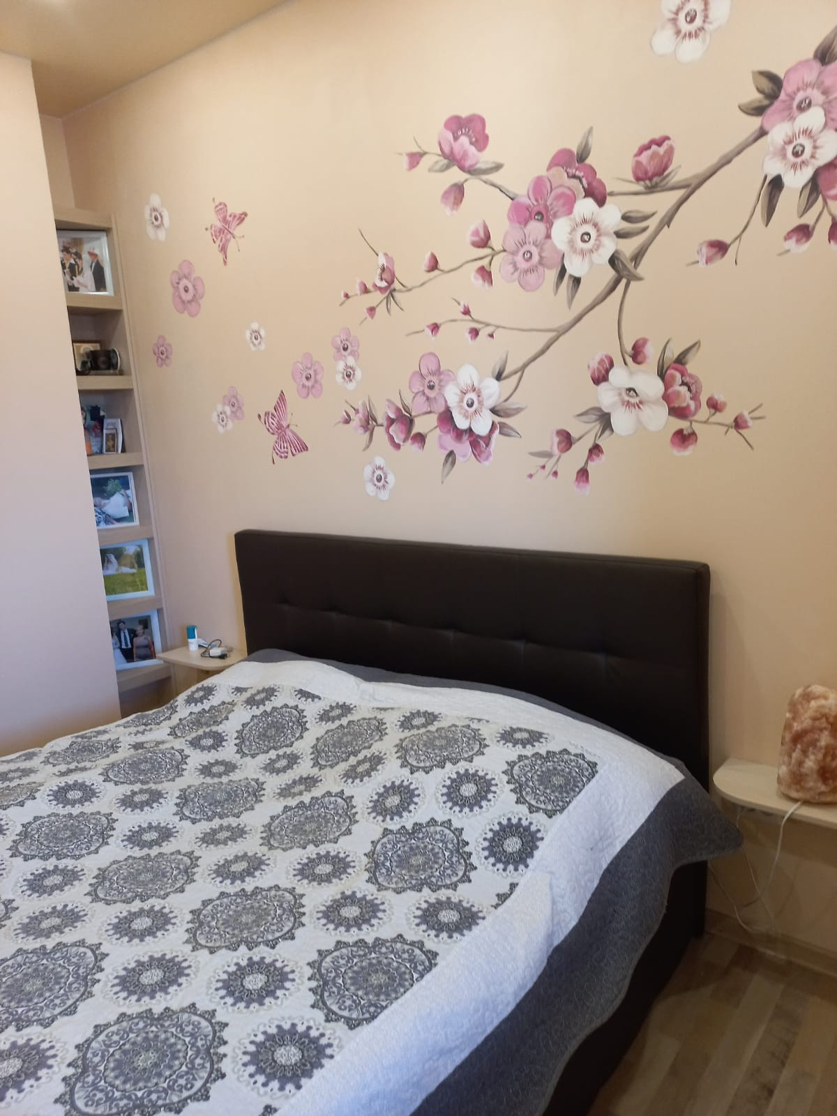Продается уютная двухкомнатная квартира, полностью готова к комфортному проживанию. В квартире сделан качественный ремонт, на стенах в комнатах и коридоре ручная роспись. Новому владельцу остается встроенная кухня с мебелью, техникой,также остается вся мебель в квартире, техника по согласованию. Приятным бонусом, в квартире установлена финская сауна. Стены - моющаяся краска. Полы: детская, спальня, кухня гостинная -ламинат, прихожая плитка. На всех окнах кассетные шторы, в спальне и детской блэк аут.В прихожей два вместительных шкафа купе, на балконе встроенное трюмо с комодом. В квартире никто не прописан, один собственник, приедет на сделку лично. Коммунальные платежи  в летнее время 4500, в зимнее 7000.  Рядом лес, детская и взрослая поликлиники, детские садики и школы, продуктовый магазин.