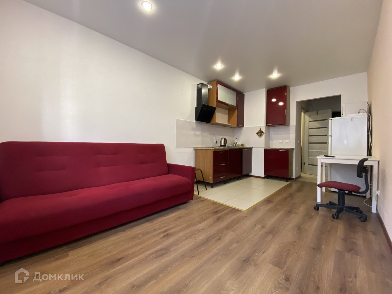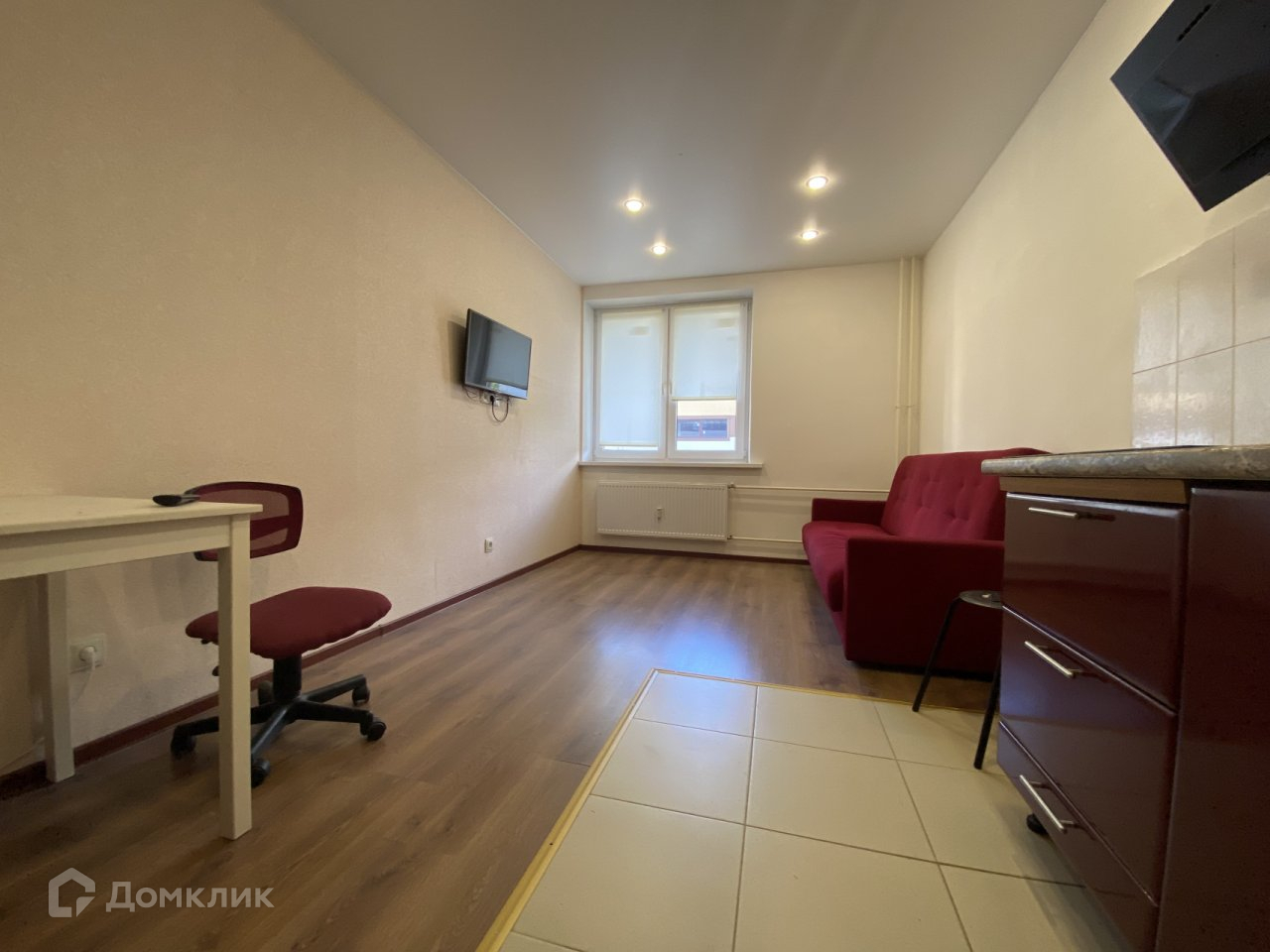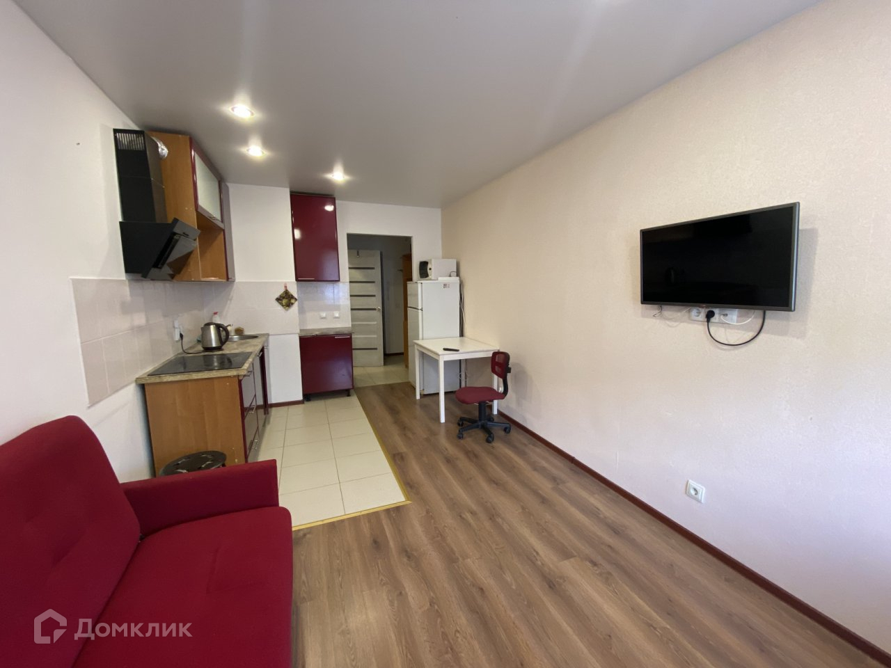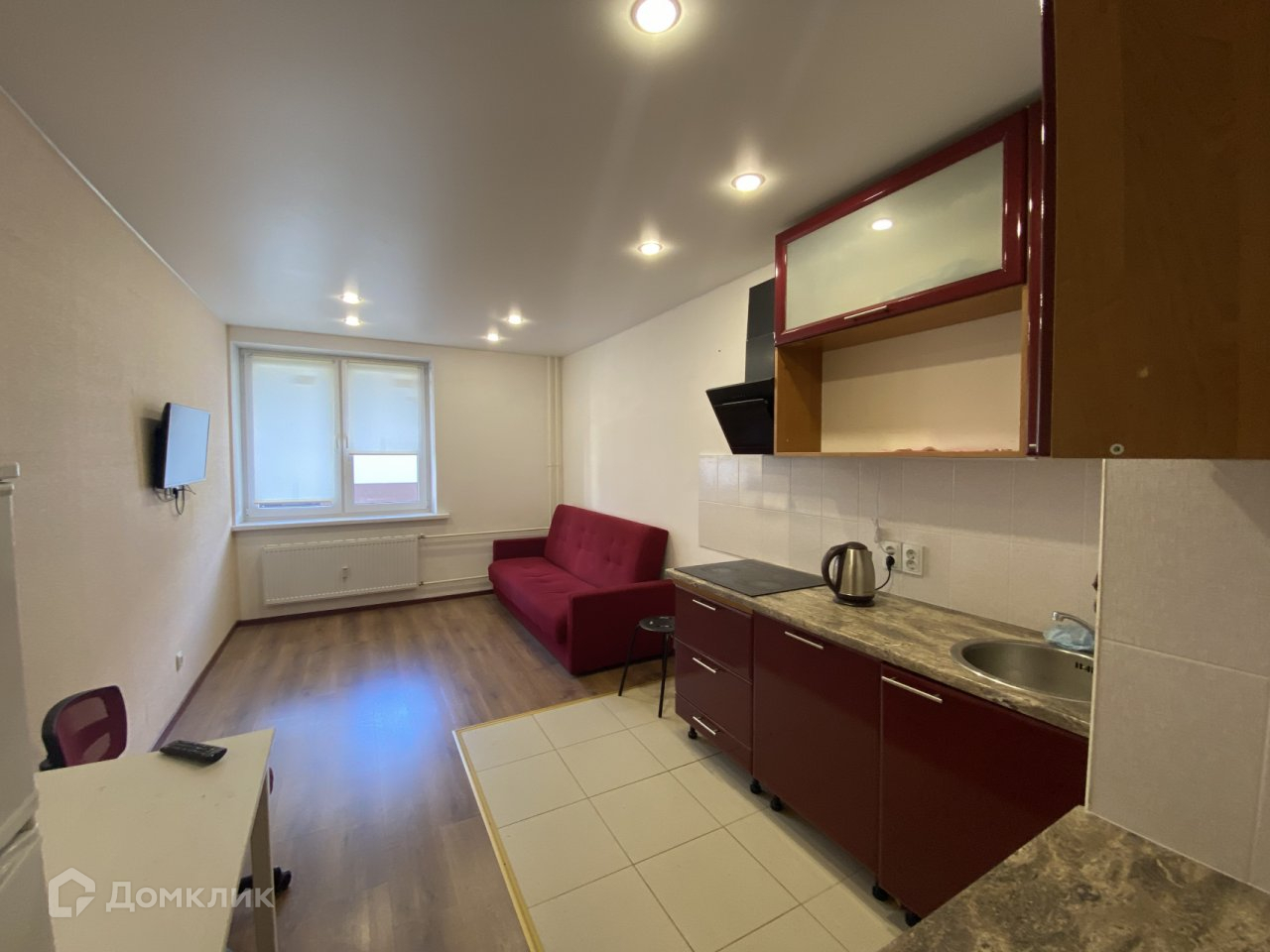 Студия продается с бытовой техникой: телевизор, стиральная машина, холодильник, микроволновая печь.
