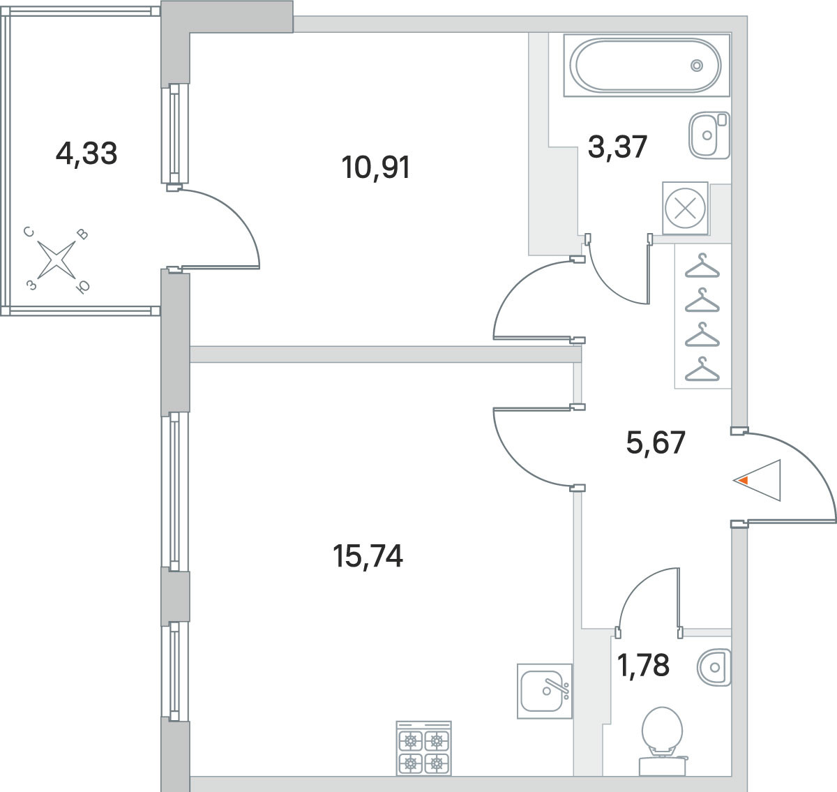 Общая площадь 37.47 м2