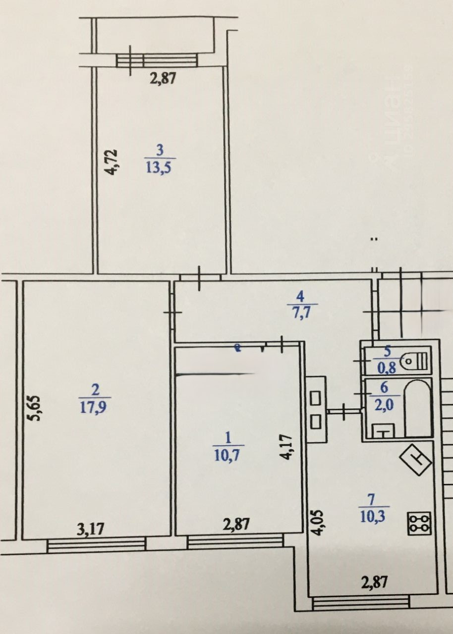 Балкон, лоджия 1 балкон