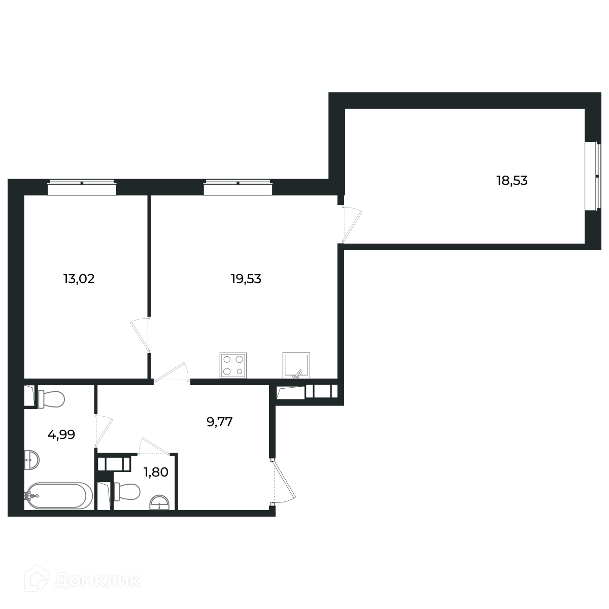 Площадь кухни 19.53 м2