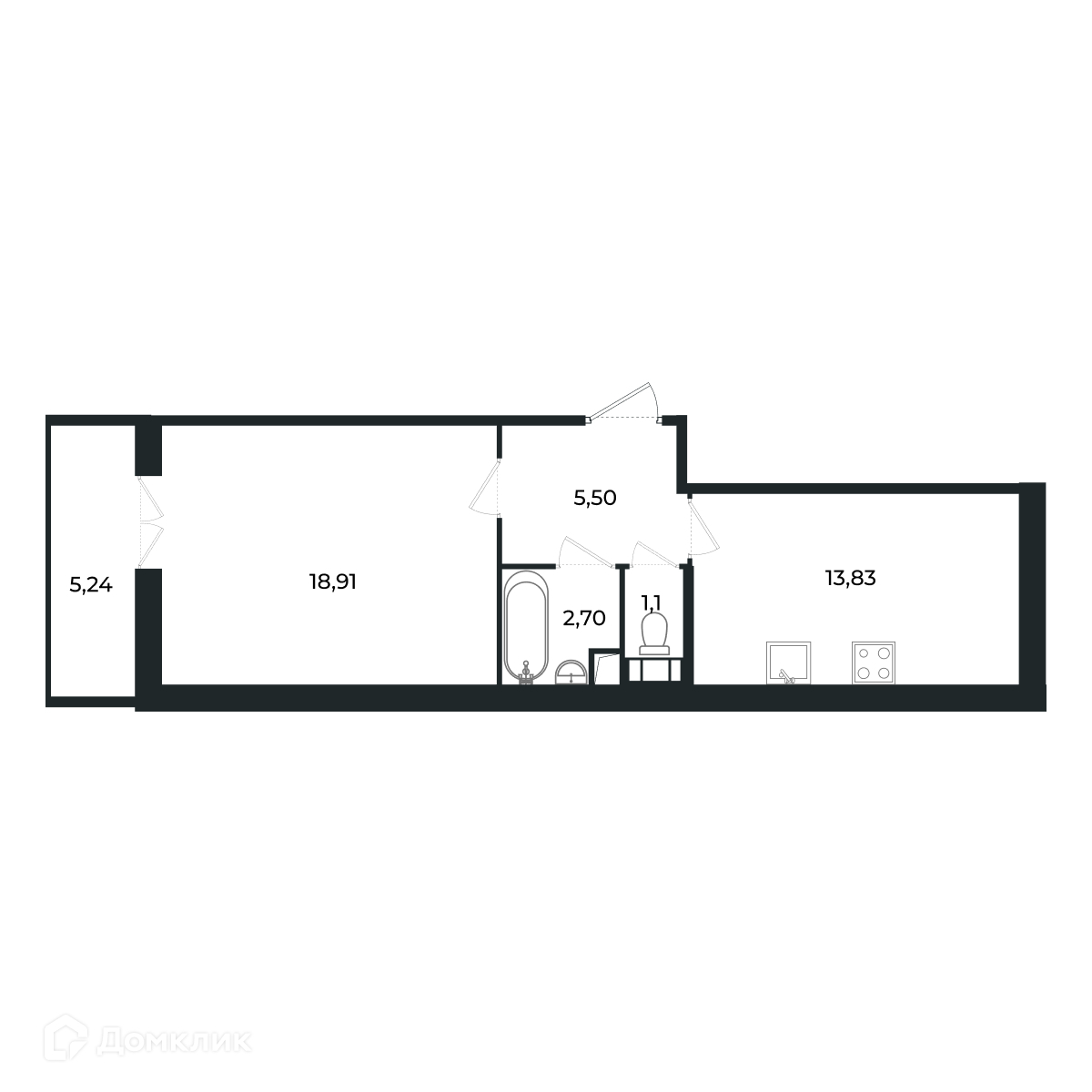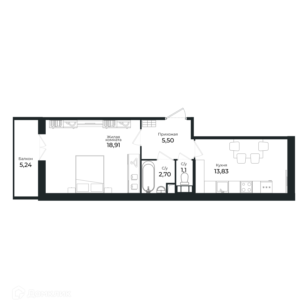 Жилая площадь 18.88 м2