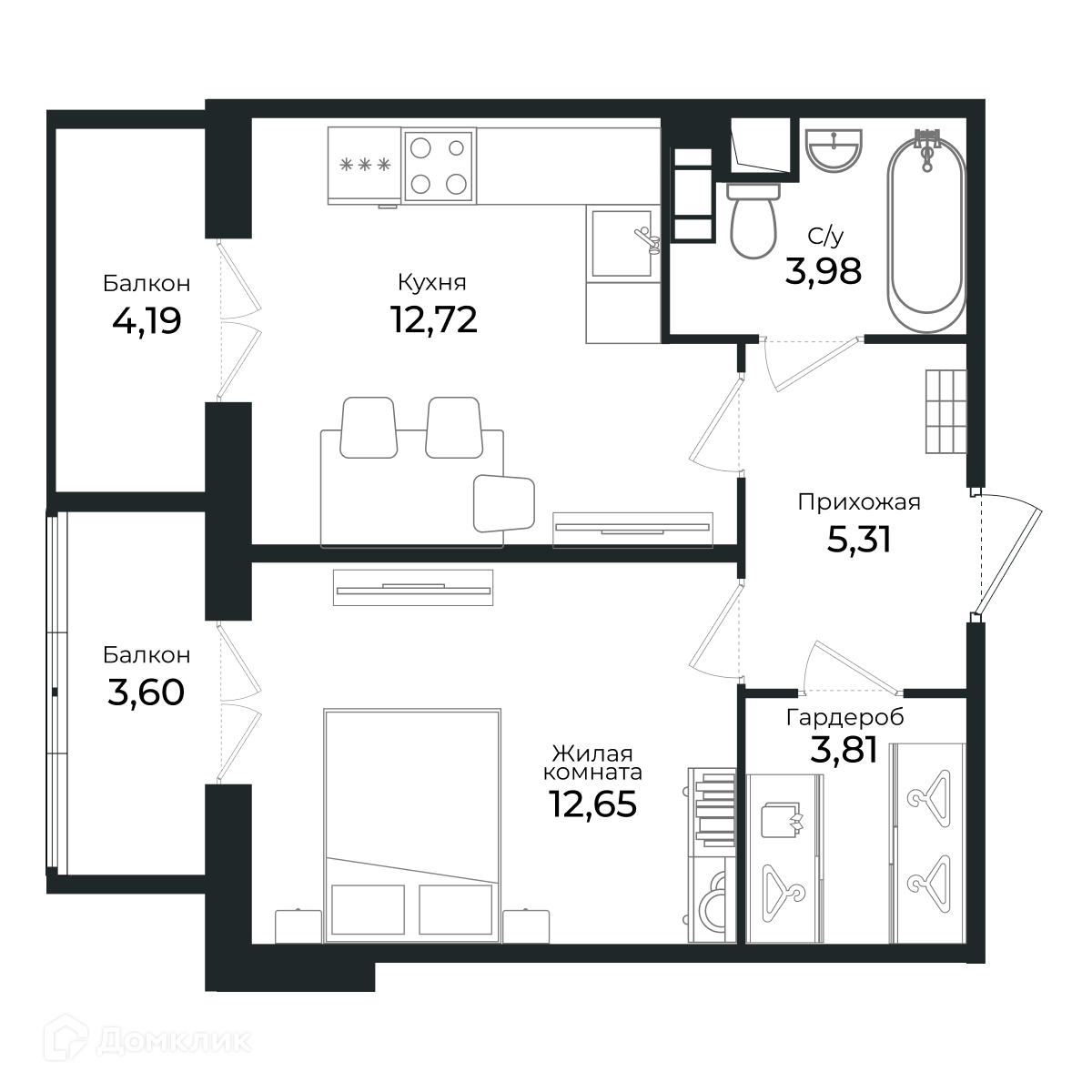 Жилая площадь 12.58 м2
