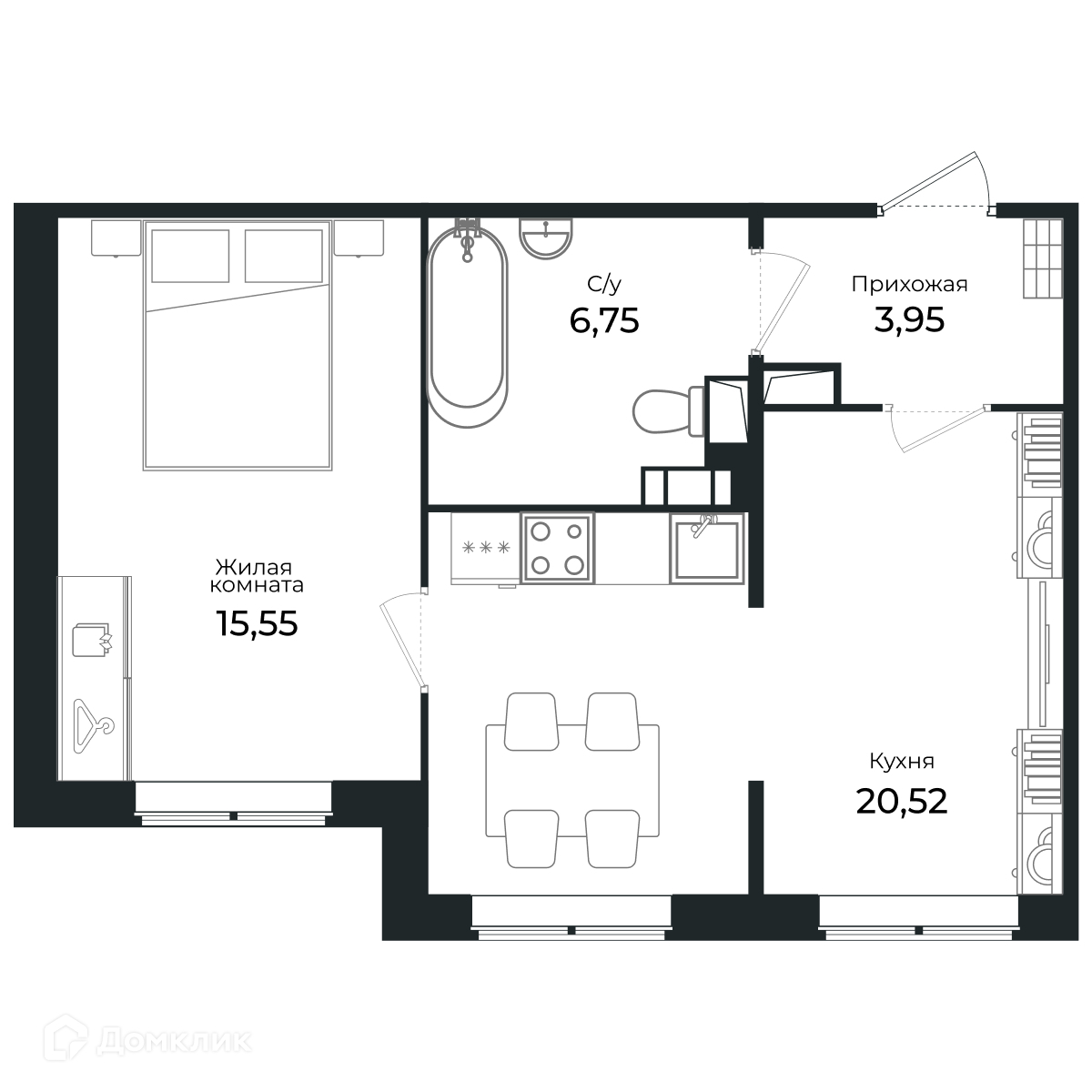Последняя 2-х комнатная квартира в 1-ой очереди с видом на лес.Для тех, кто ценит комфорт, функциональность.Наличие двух комнат позволяет обустроить спальню и гостиную.Санузел совмещенный.Система хранения во входной зоне. Грязная зона удалена от основной части квартиры.