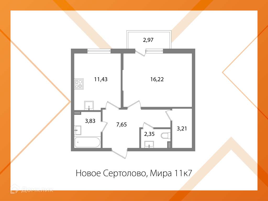 Общая площадь 44,2 кв.м