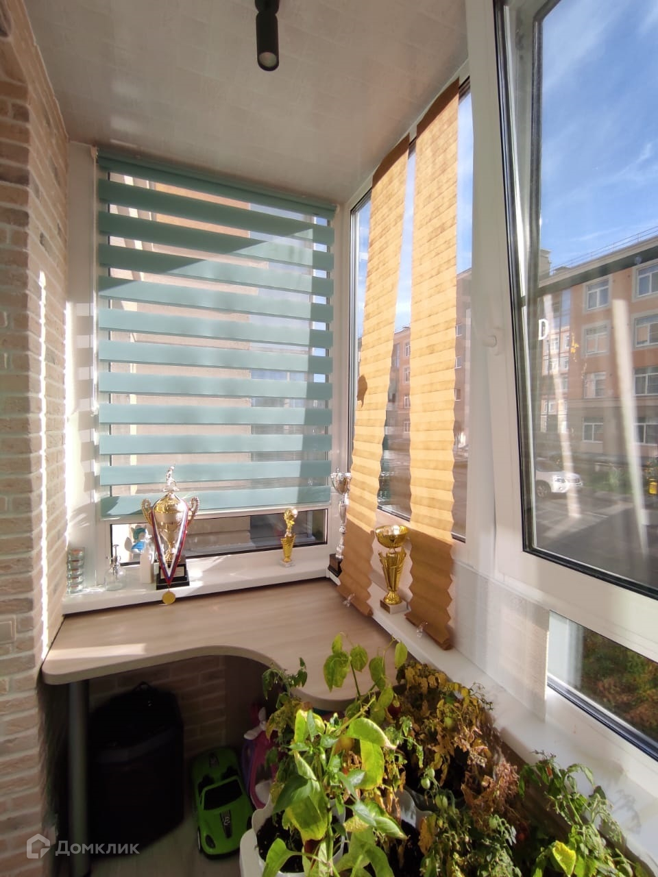 Застекленная оборудованная лоджия (проведена электрика, на полу ламинат)