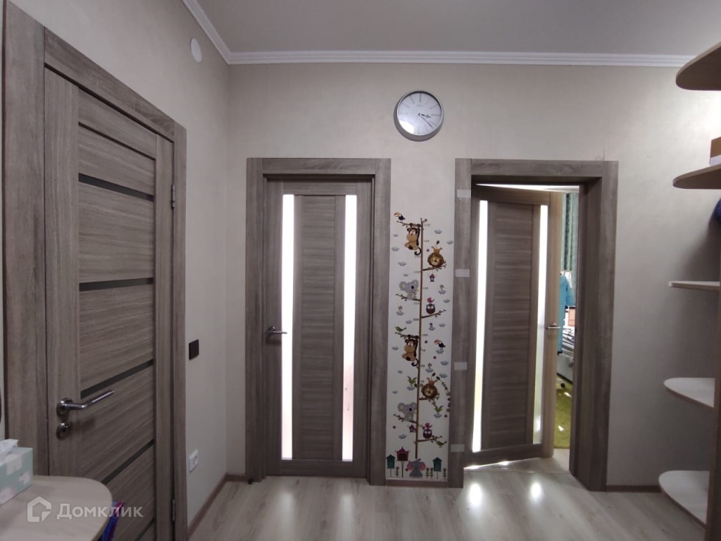 В прихожей встроенный шкаф-купе с зеркальными дверями, что визуально увеличивает пространство, создавая эффект дополнительного объема.