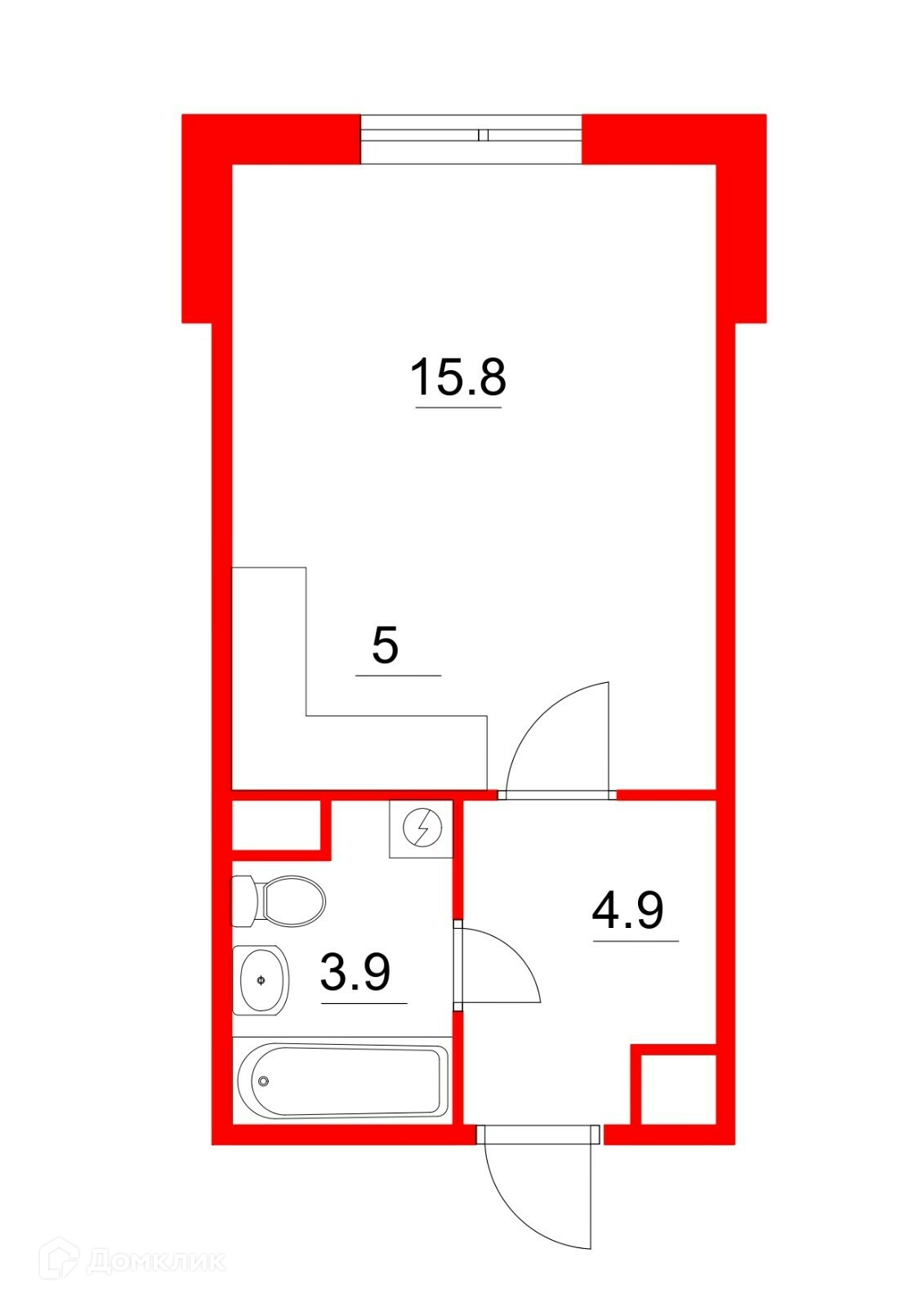 Общая площадь 29.6 м2