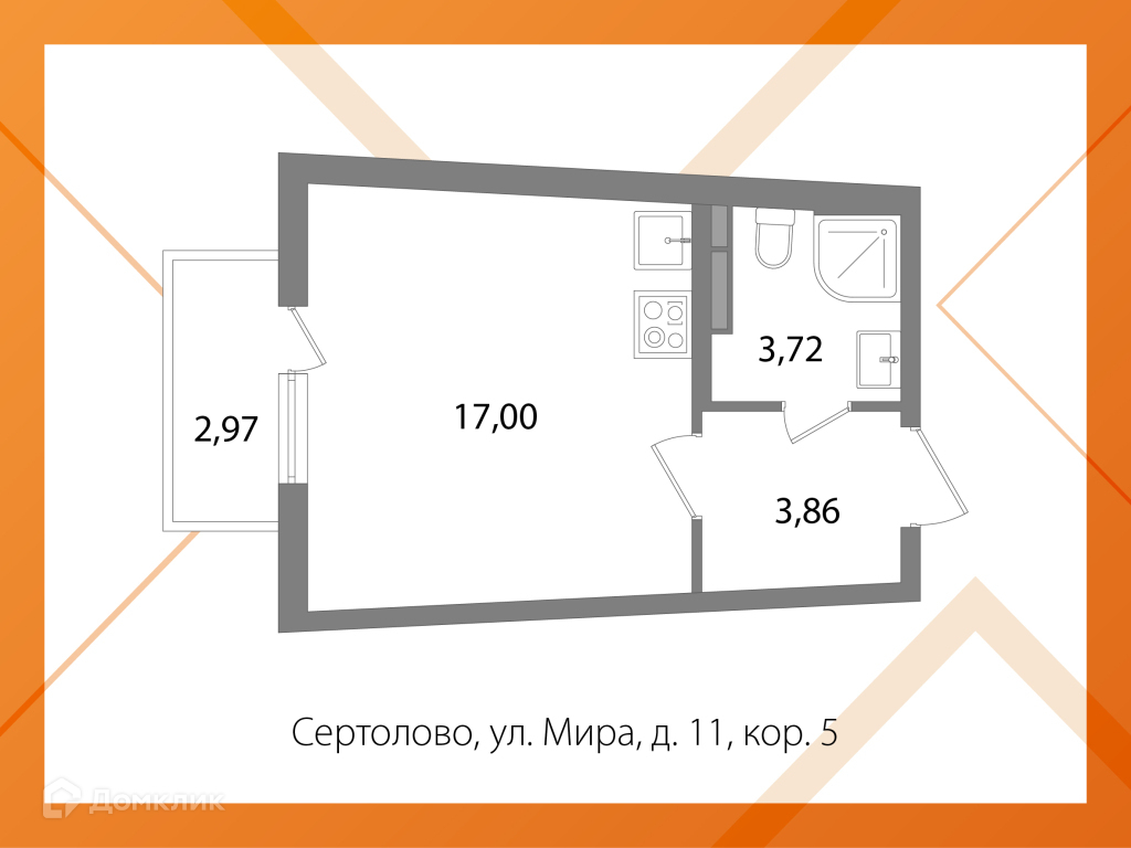 Квартира студия, 24.4 м2, этаж 3 / 4, на продажу в Сертолово, улица Мира, 11к5