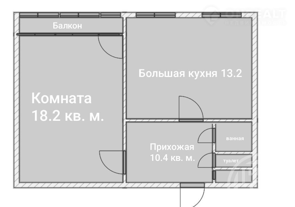 Жилая площадь 18.2 м2