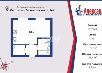 Квартира на продажу студия, 27.4 м2, Тихвинская улица, 6к6
