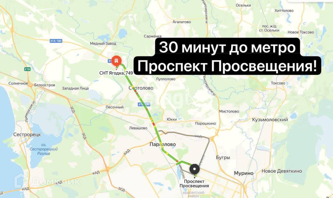Отличный вариант для жизни на природе, недалеко от СПБ. До метро Парнас, пр-кт Просвещения 30-40 минут.