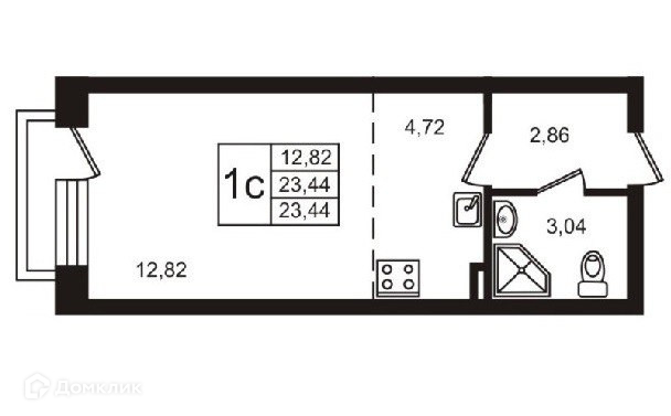 Общая площадь 23.6 м2
