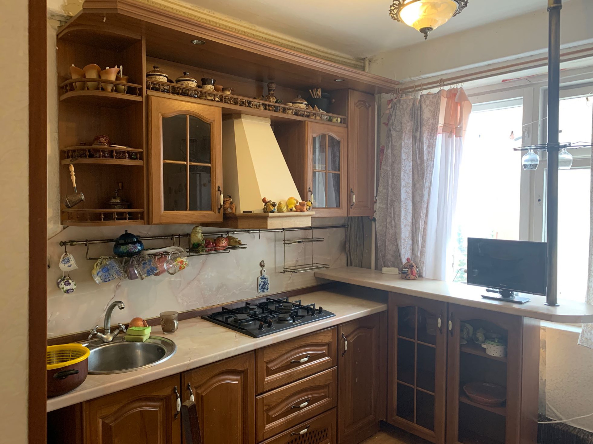 На кухне газовая плита, холодильник, духовка, телевизор, стиральная машинка. В первой комнате (10 кв.м.) большой шкаф. Во второй комнате (18 кв.м) двуспальный диван и рабочий стол. Во всей квартире новые двери. В большой комнате, в коридоре и на кухне косметический ремонт.