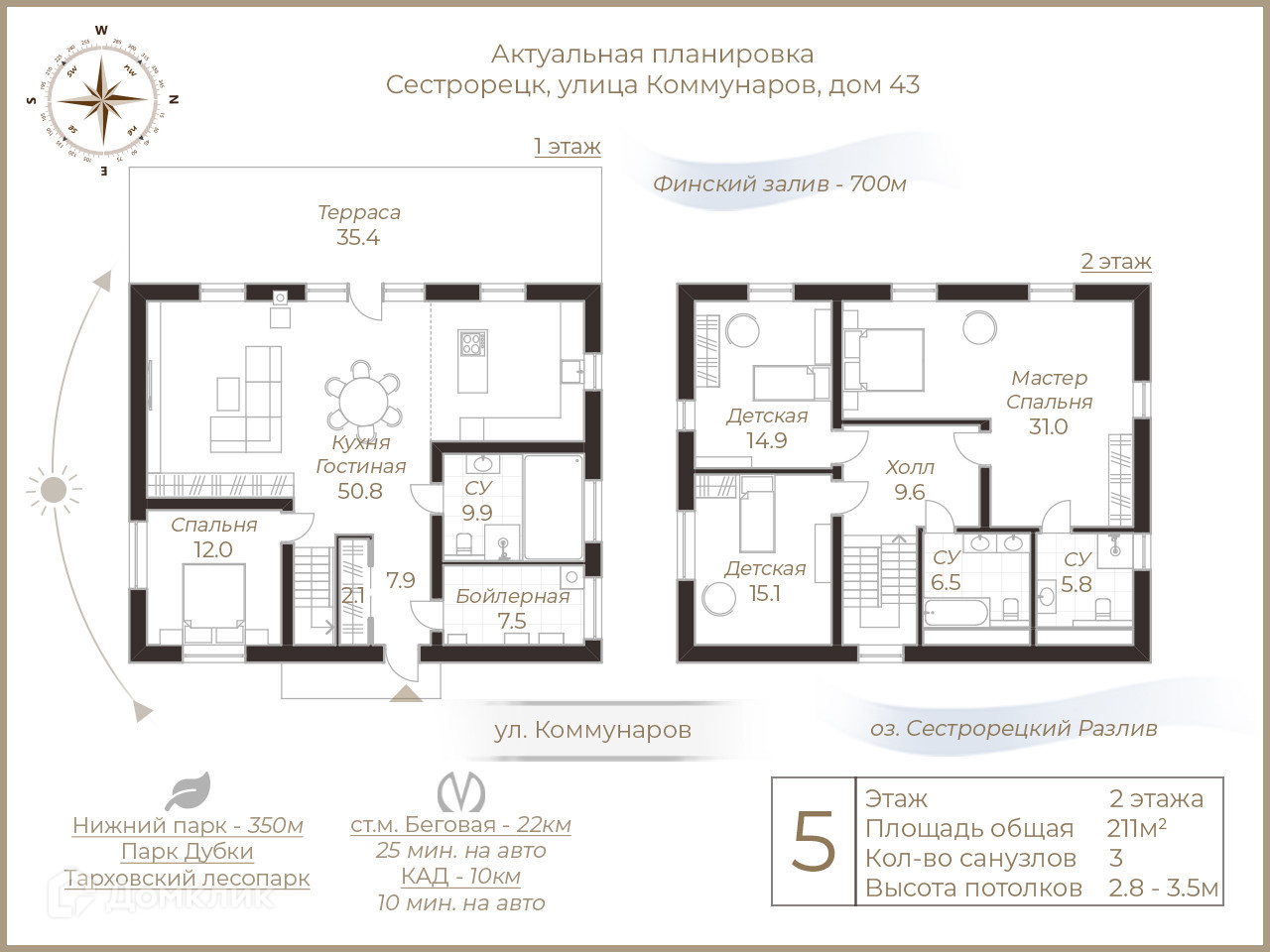 Идеально подойдет для семейного проживания и отдыха – до пляжей Финского залива всего 5 минут! Также, в пешей доступности находятся самые известные достопримечательности города – заказник «Сестрорецкое болото» и парк «Дубки» - излюбленное место туристов и коренных жителей, ведь здесь растут многолетние дубы, разбиты клумбы и посажены газоны, обустроены пруды, и прогулочные дорожки. Город имеет свои собственные минеральные источники и лечебные грязи, и конечно - чистый морской воздух.