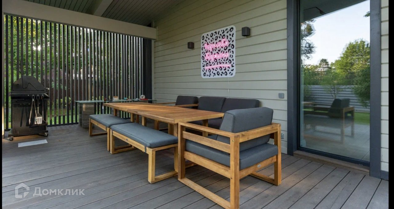 прилегает открытая терраса с летней мягкой мебелью и шезлонгами (27м2) и терраса под