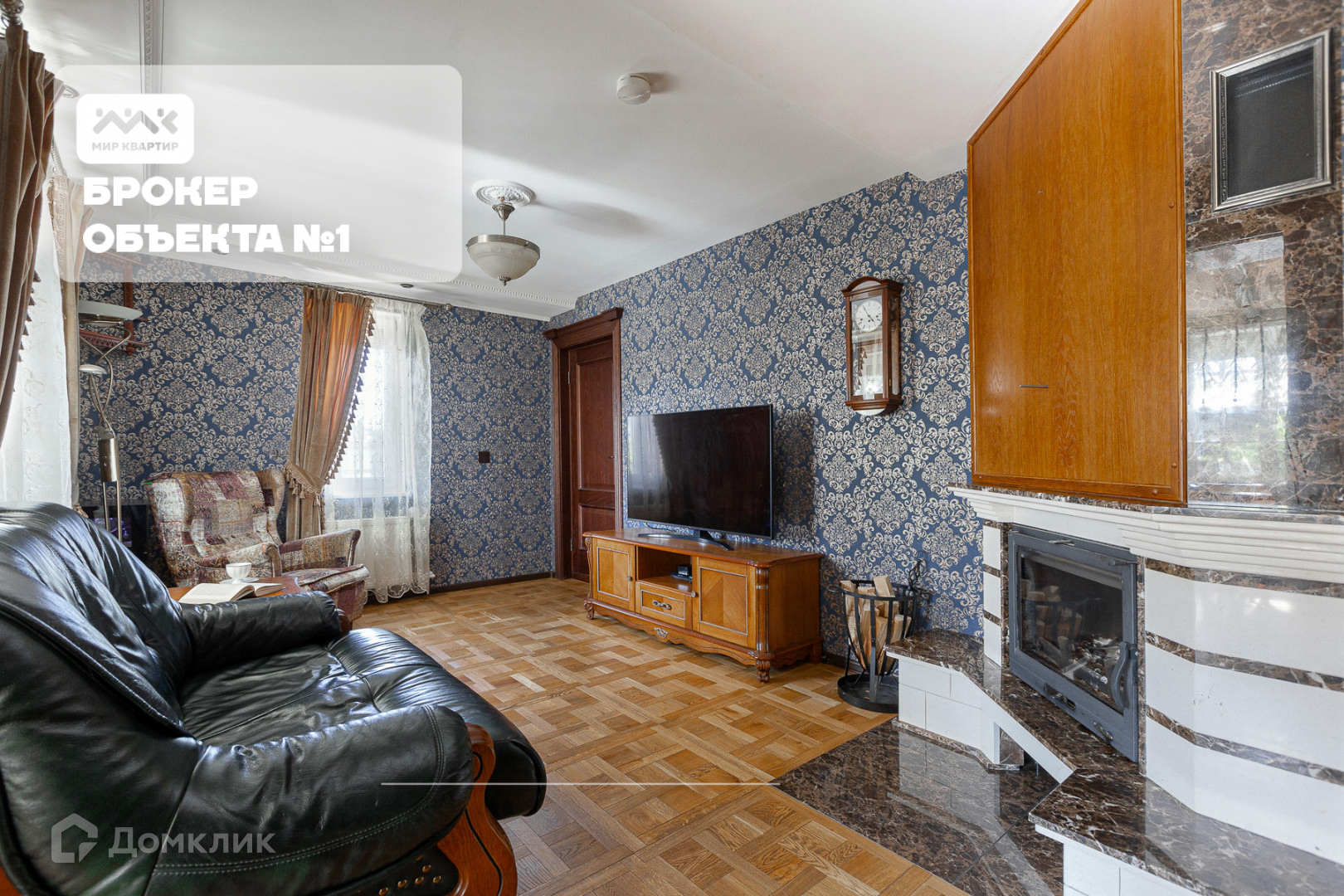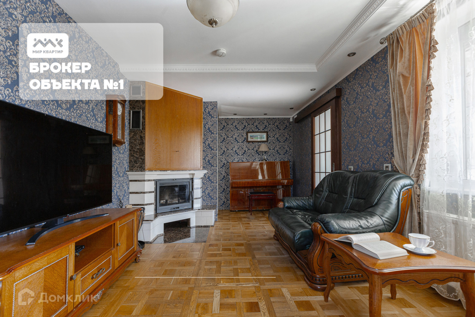 В гостиной расположен камин, как островок семейного уюта.