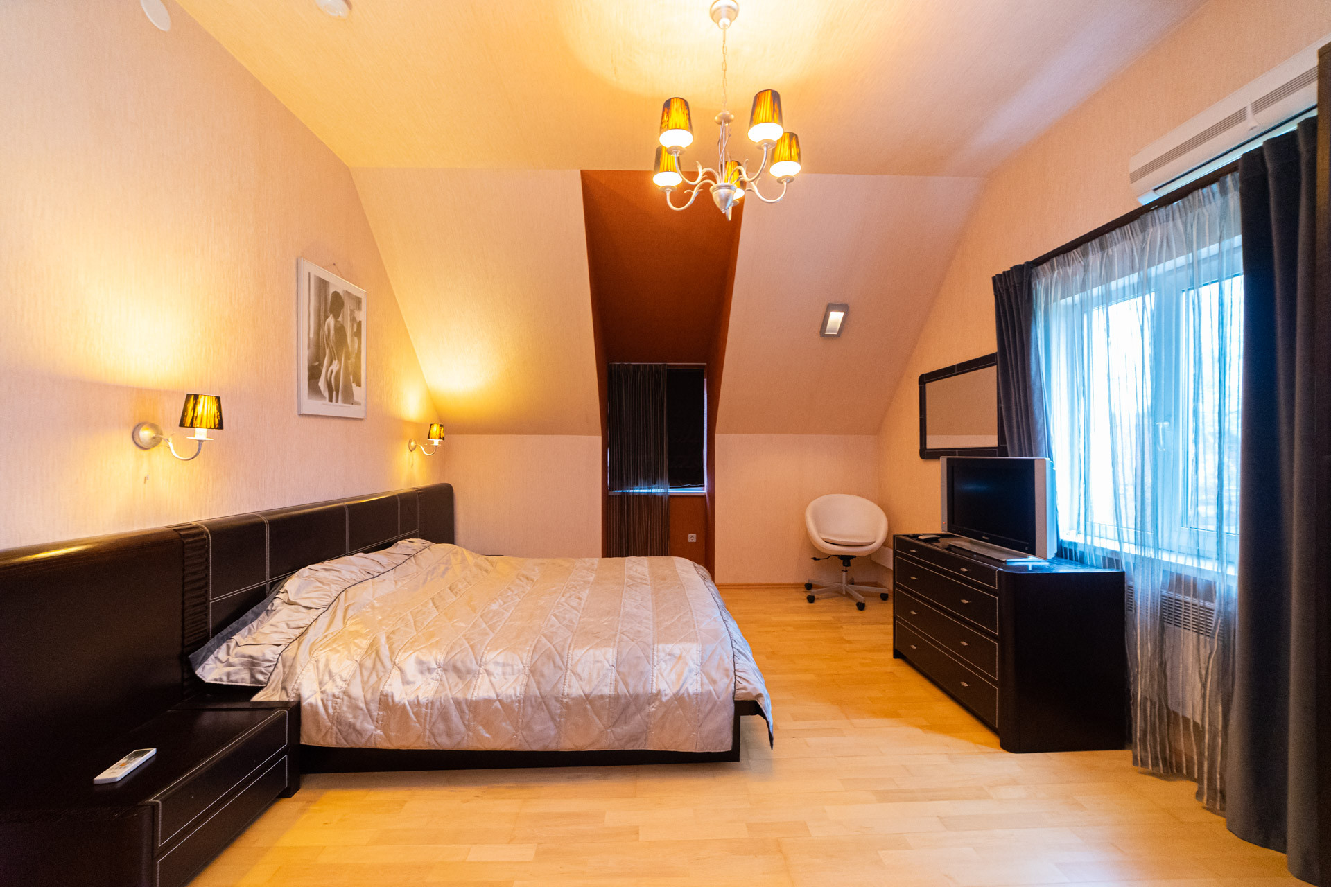 Вся бытовая техника: посуд/машина, теплые полы, кинотеатр, ТВ, камин, кондиционер.
