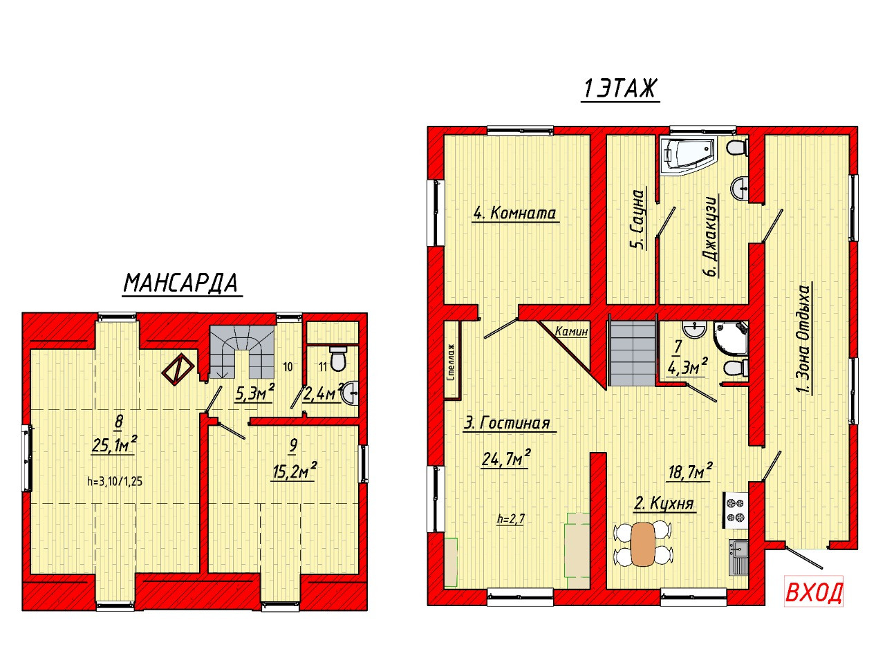 Второй этаж ( спальня 25.1м, детская 15.2м, сан/узел 2м )