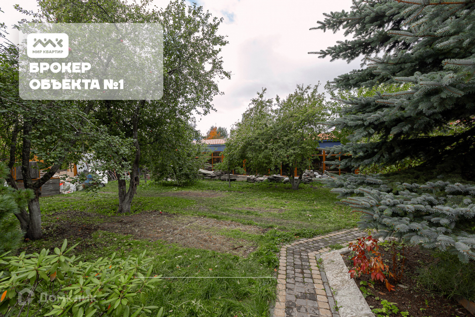 На земельном участке расположены фруктовые деревья ( груши, яблони, вишневое дерево, черешня, слива) и декоративные ( голубые ели, туи).