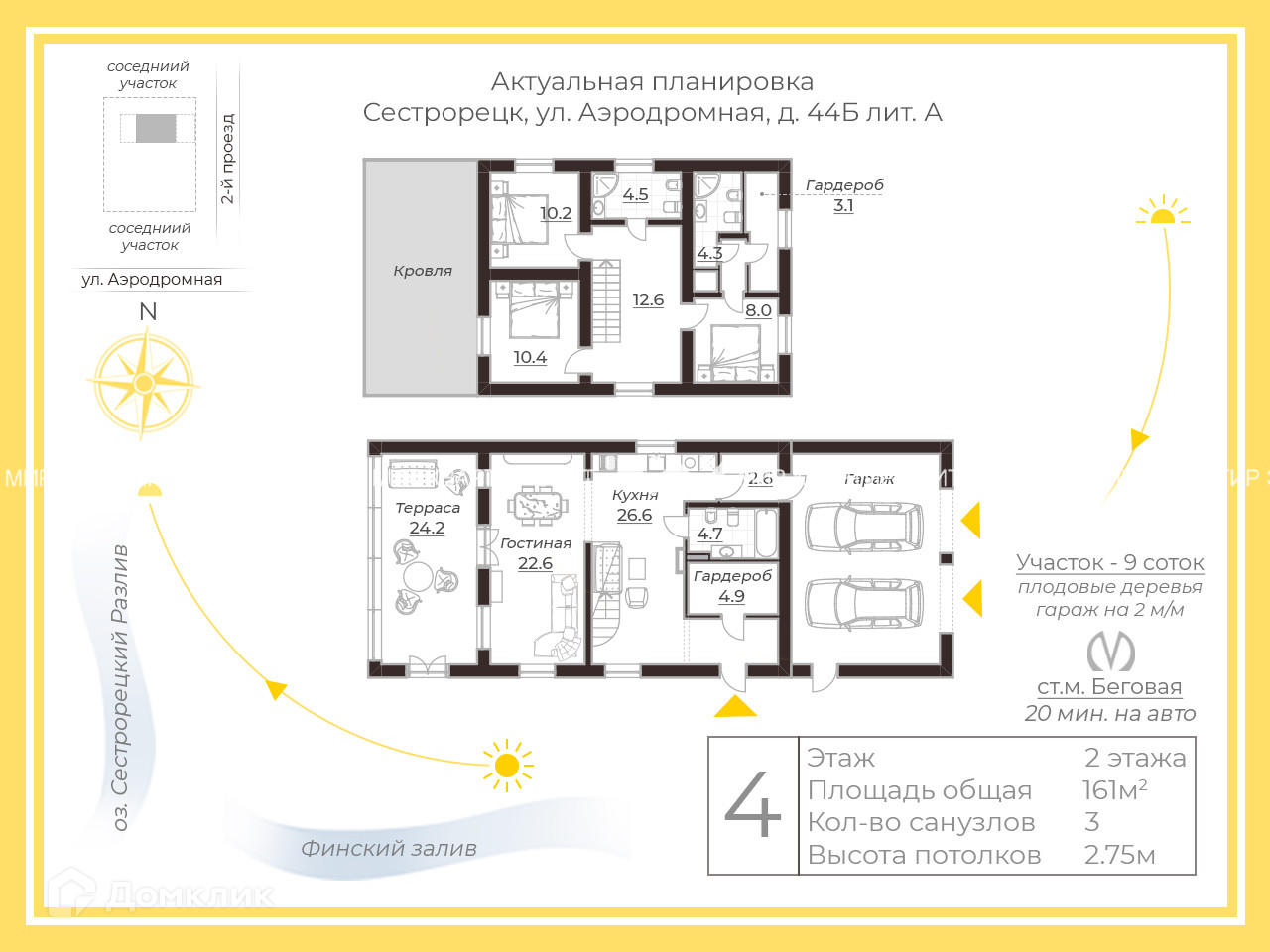 2-этажный дом, 161 м2, на продажу в Сестрорецке, Аэродромная улица, 44Б