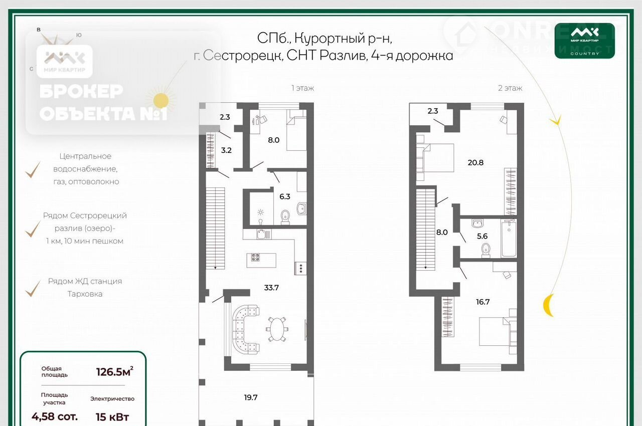 2-этажный дом, 126.5 м2, на продажу в Сестрорецке, 4-я дорожка, 1/635