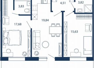 Трехкомнатная квартира на продажу, 80.1 м2, улица Инструментальщиков, 18
