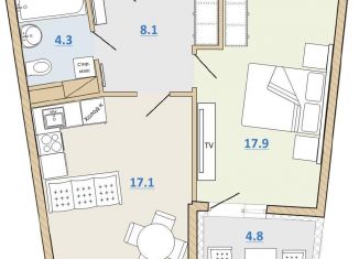 Общая площадь: 42.1 м2