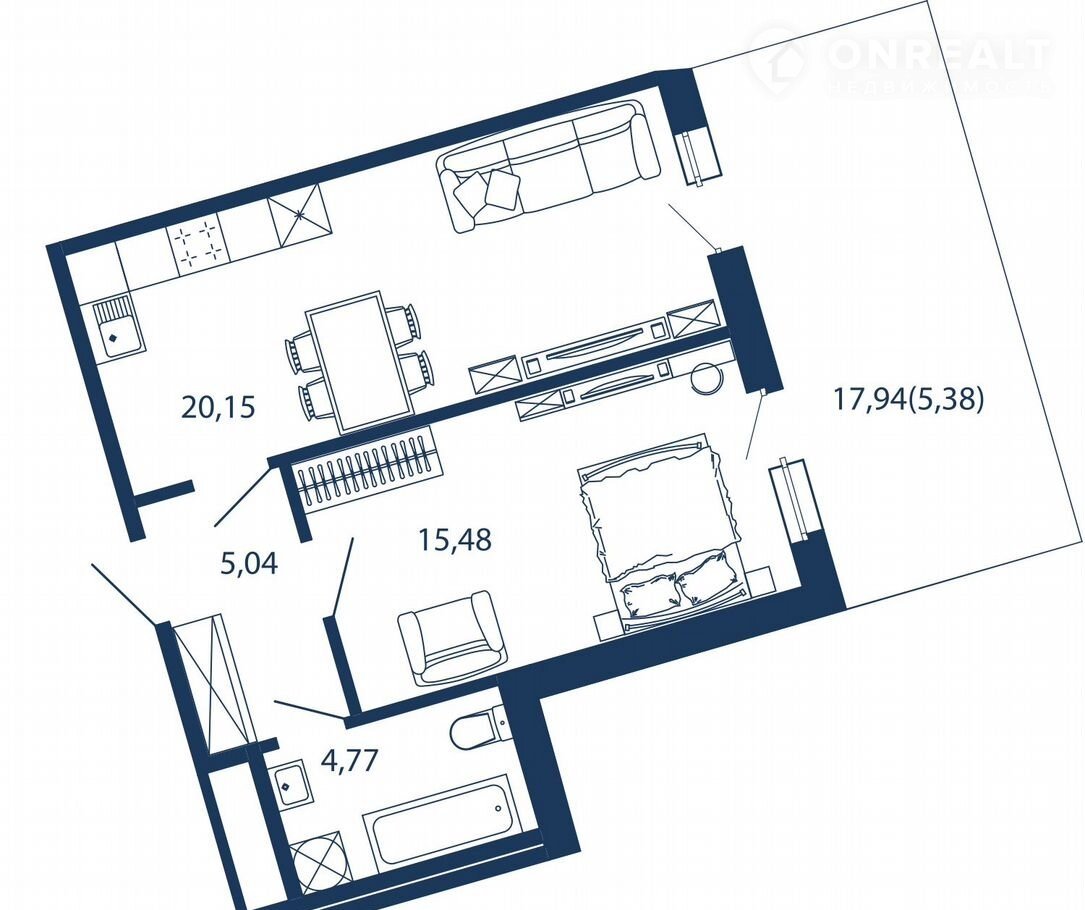 Общая площадь 50.8 м2
