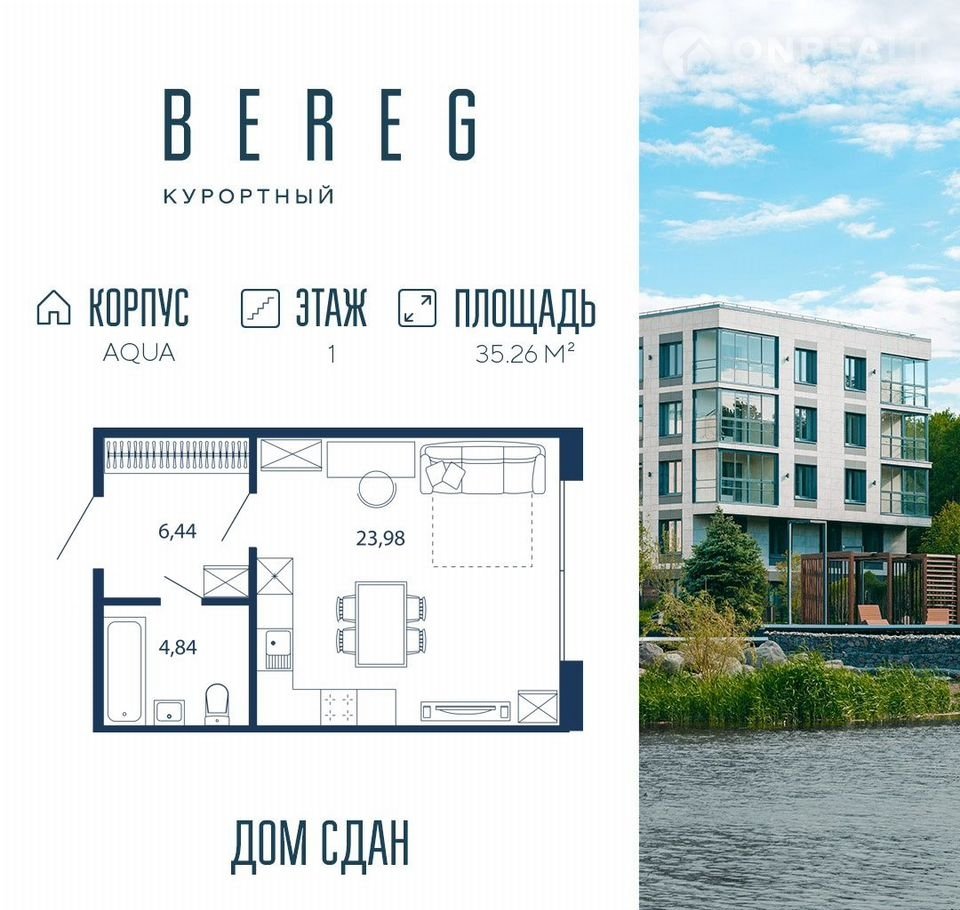 Aпapтaмент № 427 плoщaдью 35,26 кв.м. в корпусе Аqua с видoм во двop