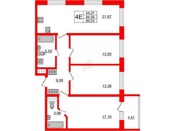 Общая площадь 86 м2