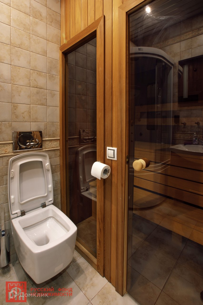 В квартире 2 сан.узла, 2 просторных гардеробных, сауна. Сауна обшита кедровой доской Абаши ( не нагревается при температуре ), есть скамейка (место для отдыха).
