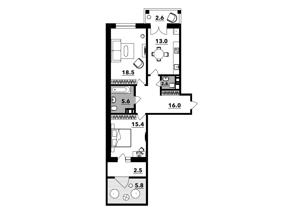 Балкон, лоджия 2 балкона