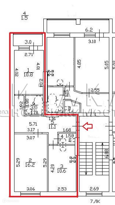 Балкон, лоджия 1 балкон