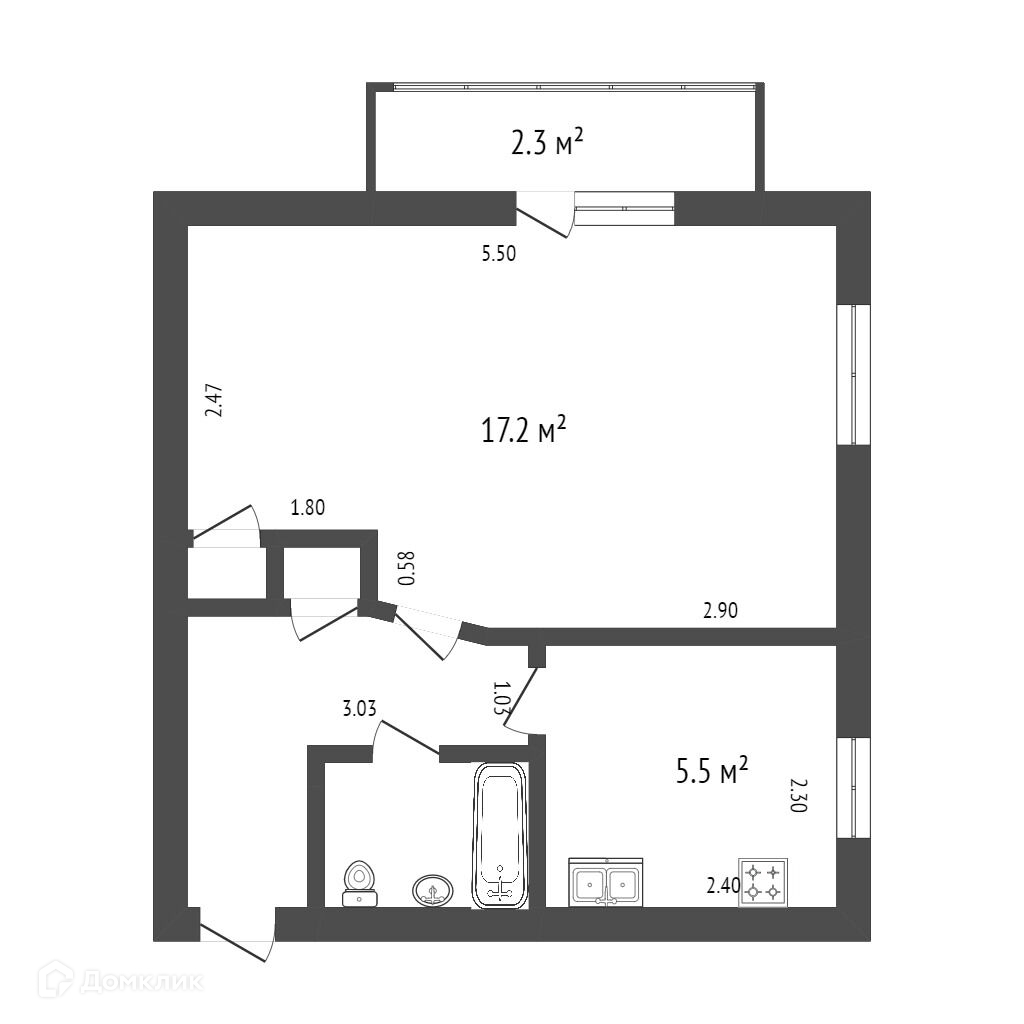 Общая площадь 31.2 м2
